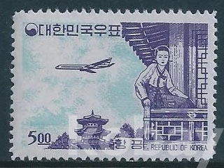 (한국우표-72)1963년새원화백지항공5원우표(미사용제)-MNH, VF