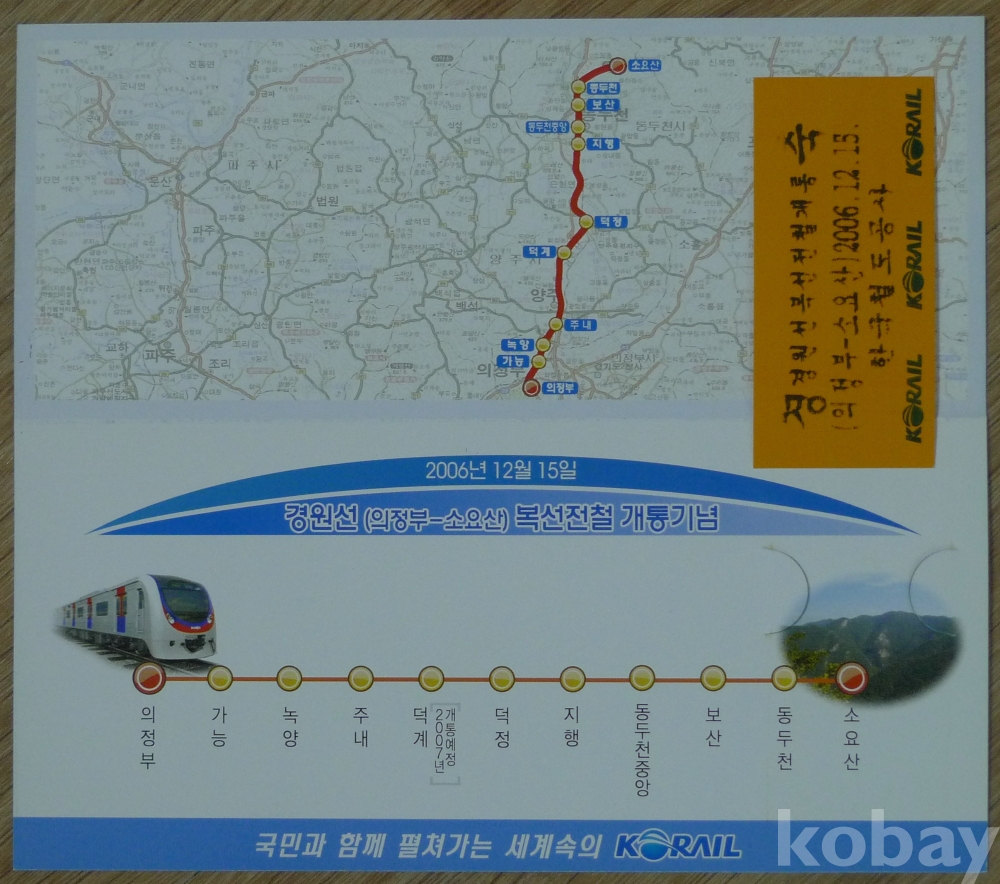 2006년 경원선(의정부 - 소요산) 복선 전철 개통 기념 승차권