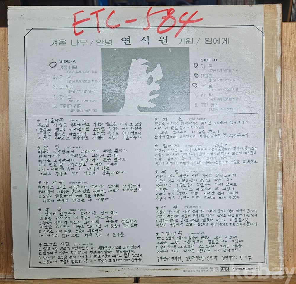 최고의 싱어송 라이터인 [ 연석원 ] 선생님의 희귀 음반이며 소장용으로 좋습니다.