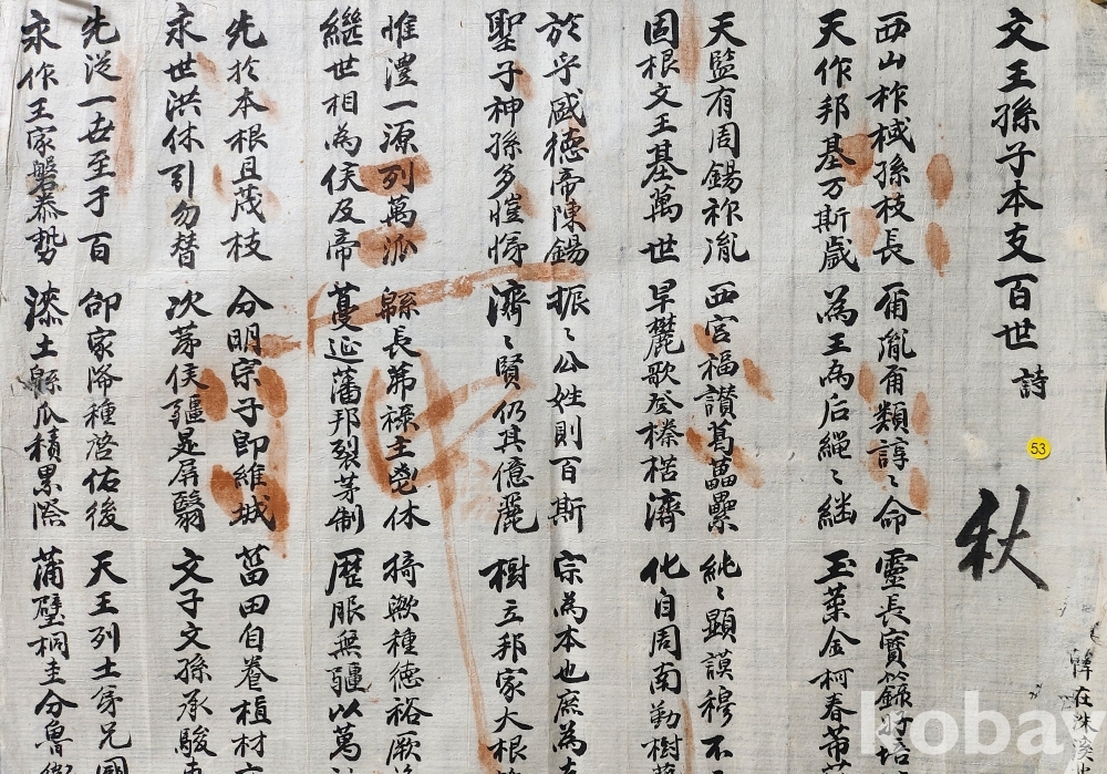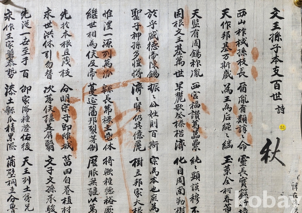 53호 하나下노랑봉투 번 //// 구한말 연대 갖춘 다듬이 장지에 명필로 쓰여진 시문장(詩文章)입니다,