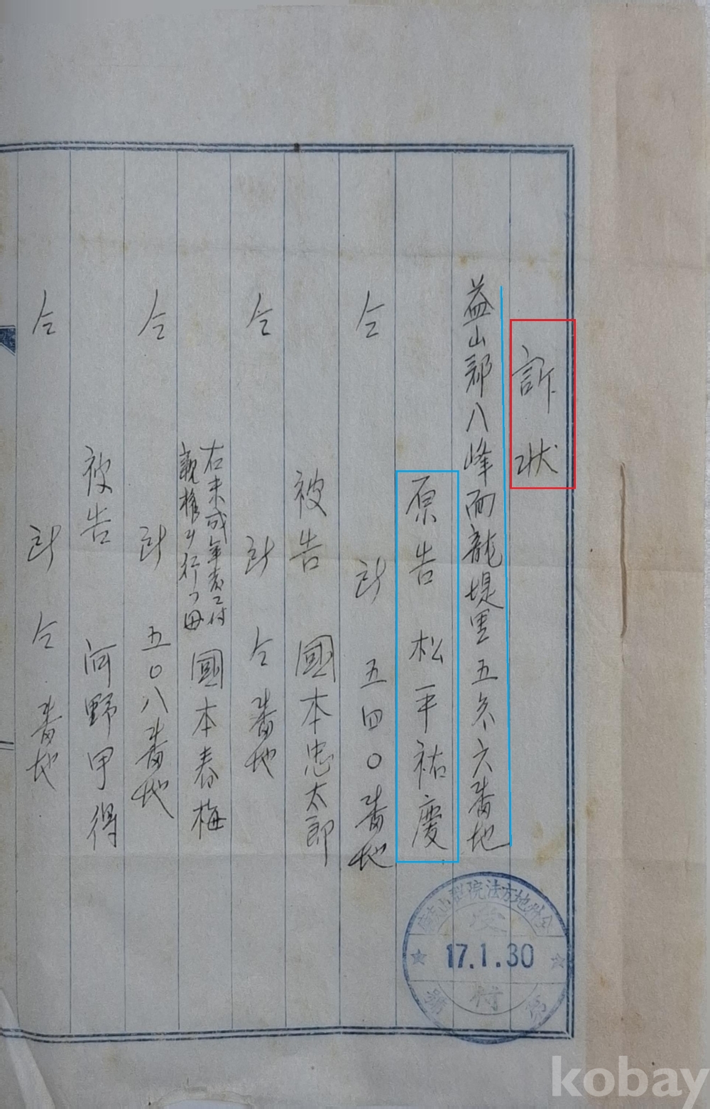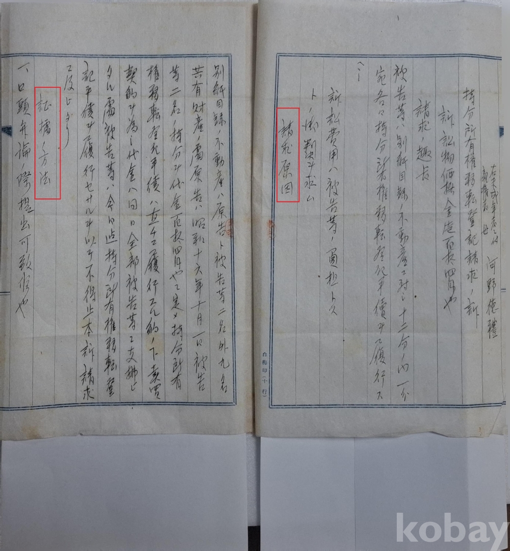◈ 소화 17년(1942) 1월 20일에 익산군 팔봉면 용제리에 사는 원고(原告)가