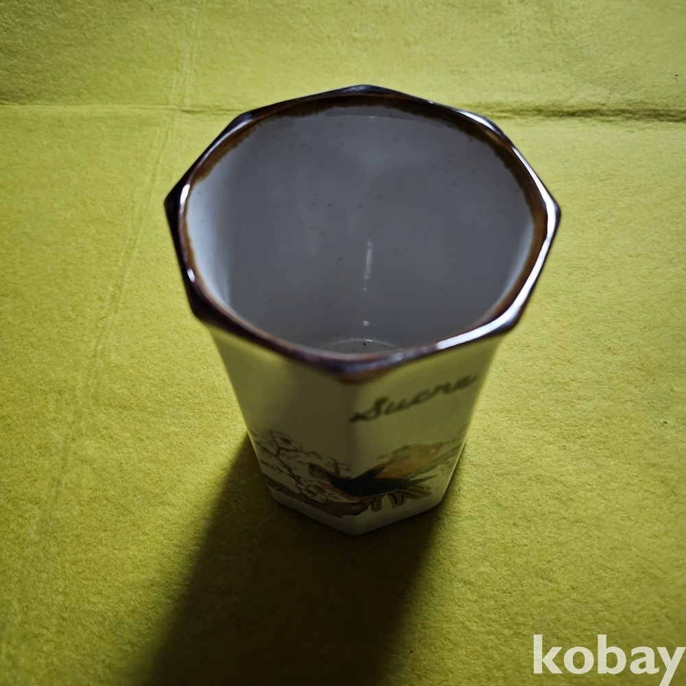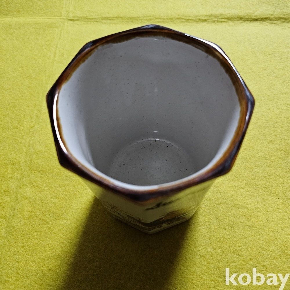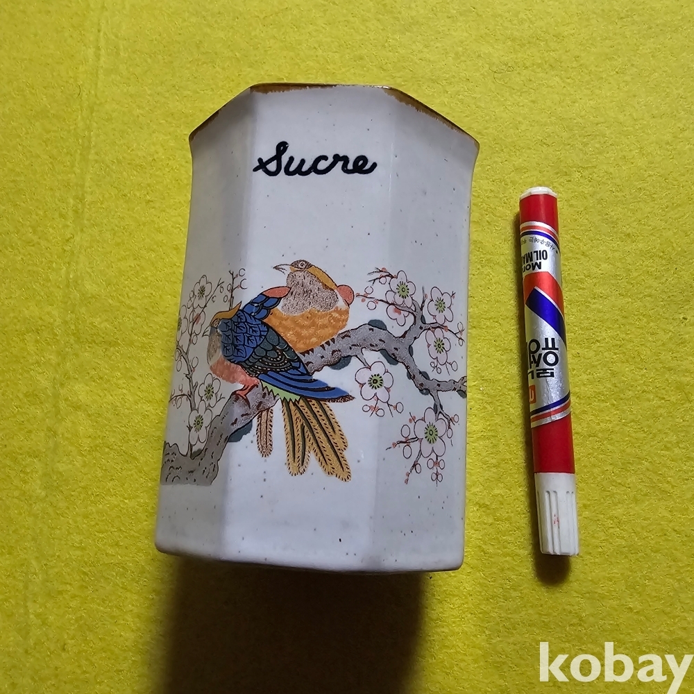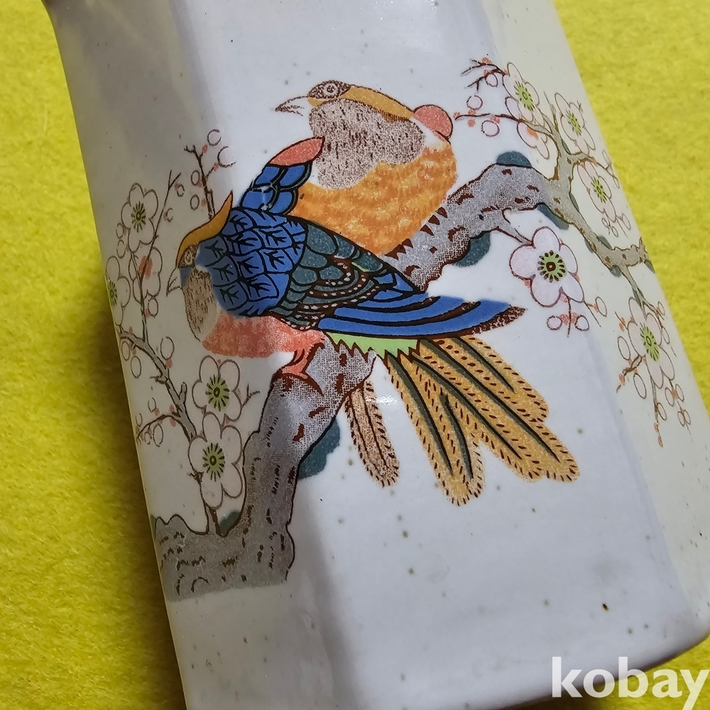 (((도자기붓통))) 오래전 매화나무에 새그림 8각형도자기붓통/필통