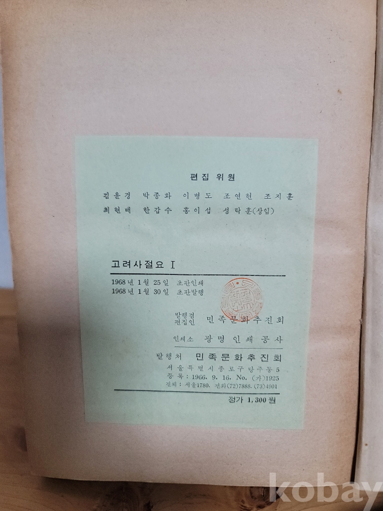 고려사절요.. 1968 년 초판 / 박종화 조지훈 한갑수 최현배 편집 / 고서 고문서 희귀 근대사 자료