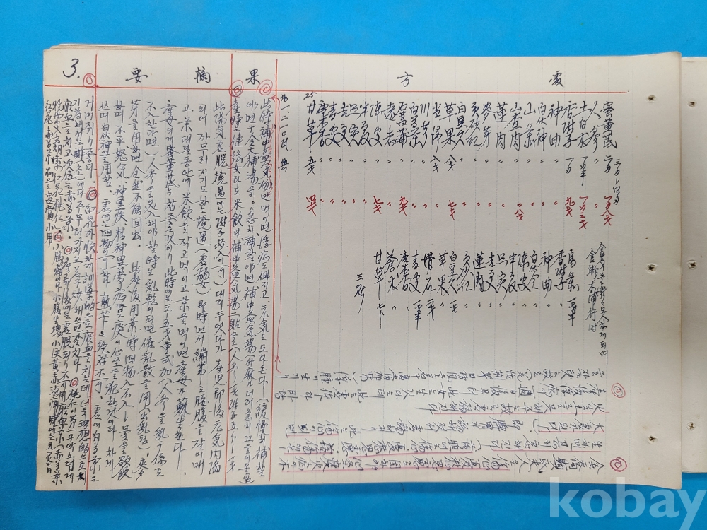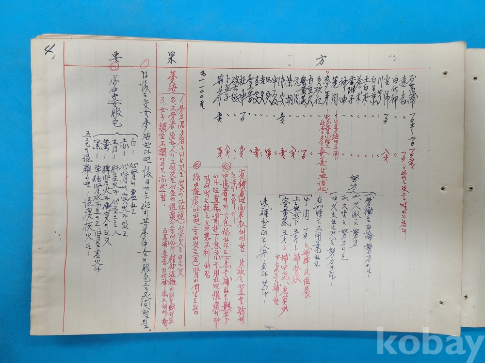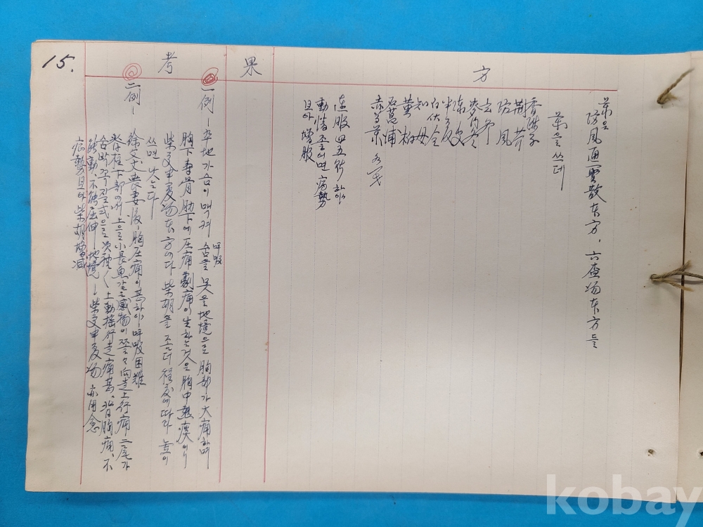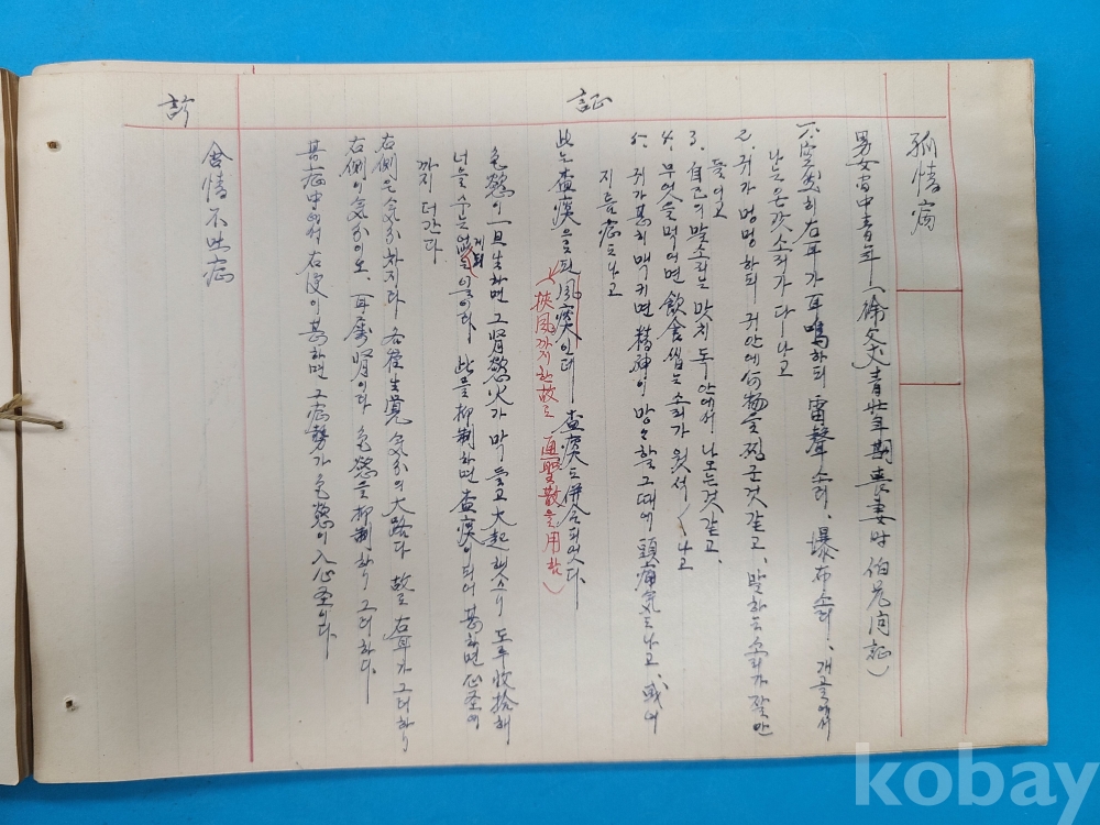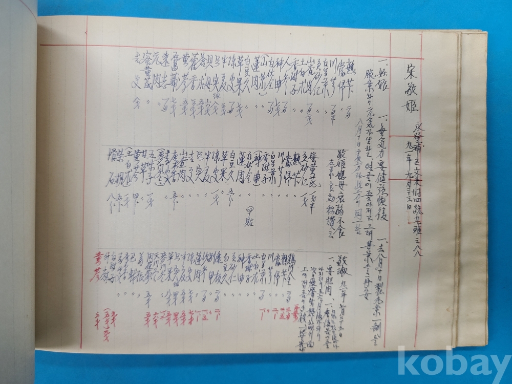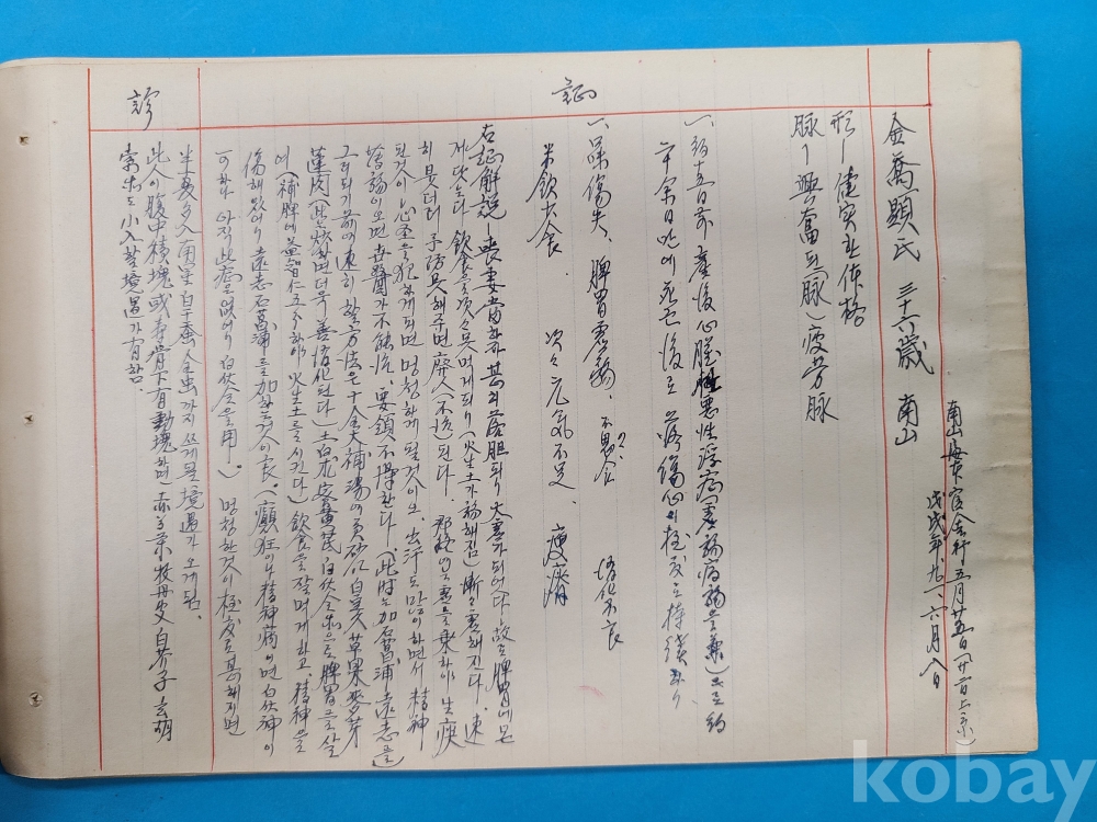 1950년대 한의원에서 한의사가 환자의 증상,처방내용 등을 기록한 진료부책 이다 약 10여명의 환자 내용이 쓰여져 있다