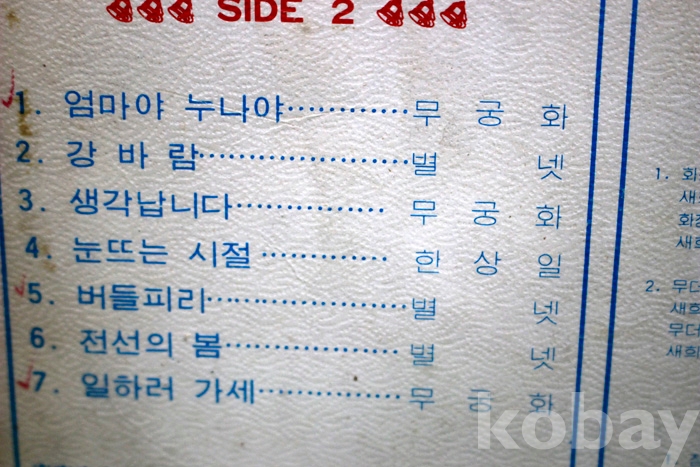 수록 곡 목은 사진을 참조하시기 바랍니다