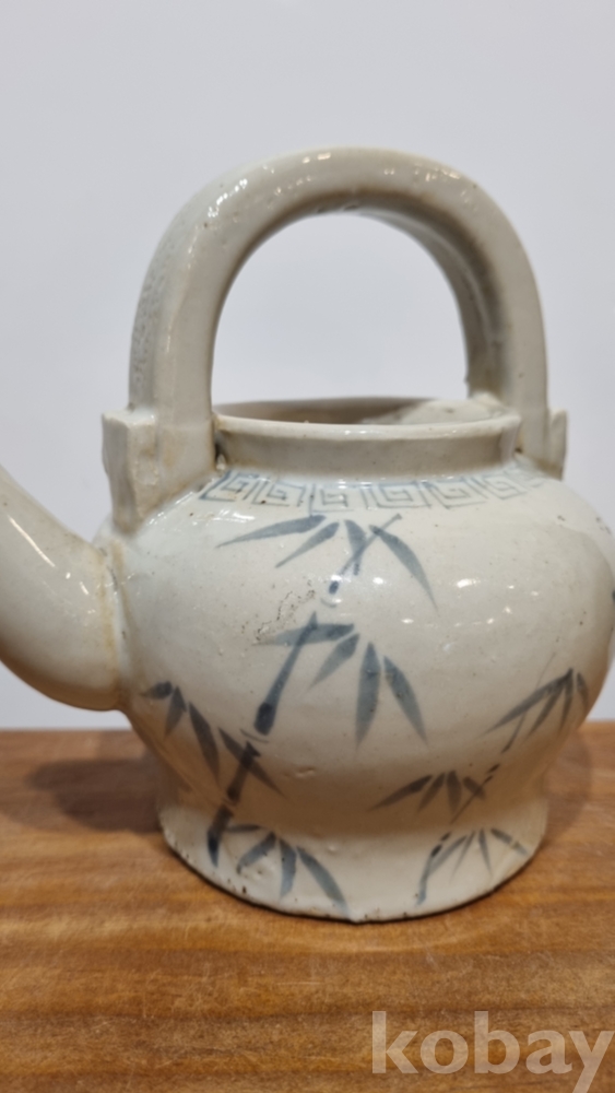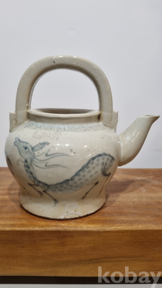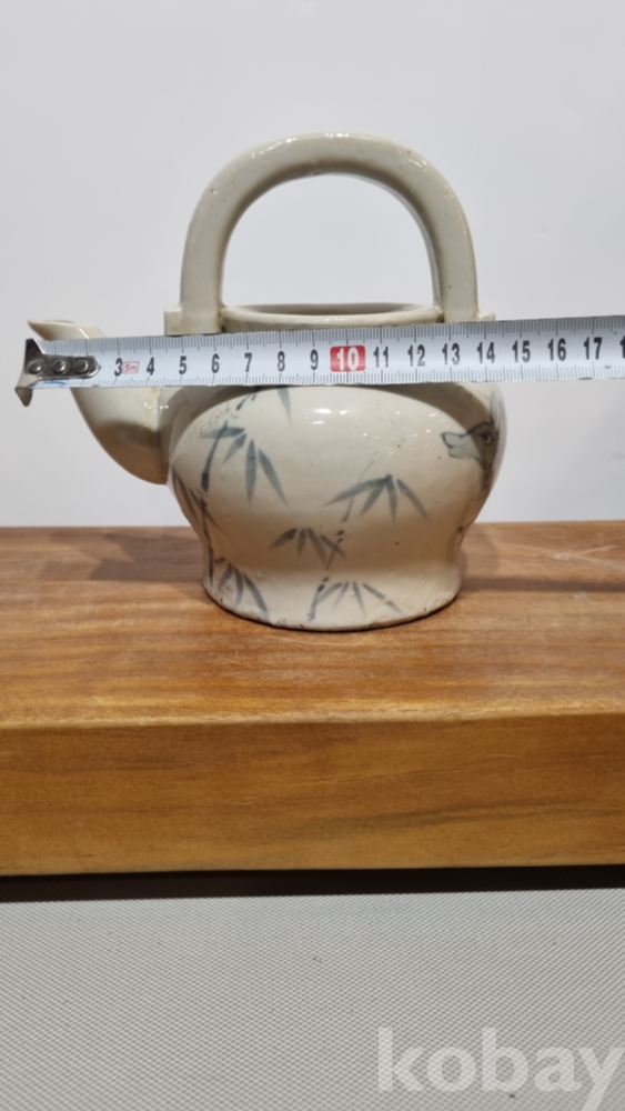 장생문주전자 사슴과 대나무를시유 하였다