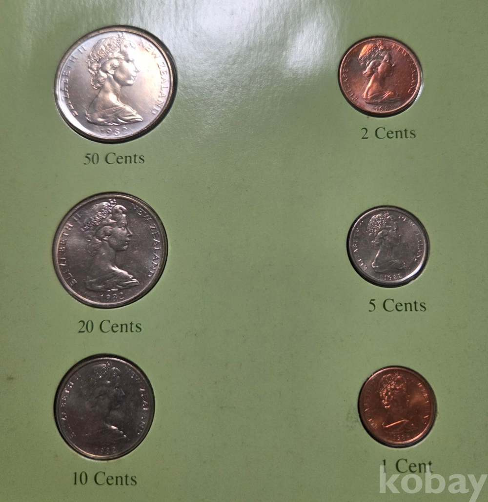 1982년 뉴질랜드에서 발행된 주화 및 우표 세트입니다.