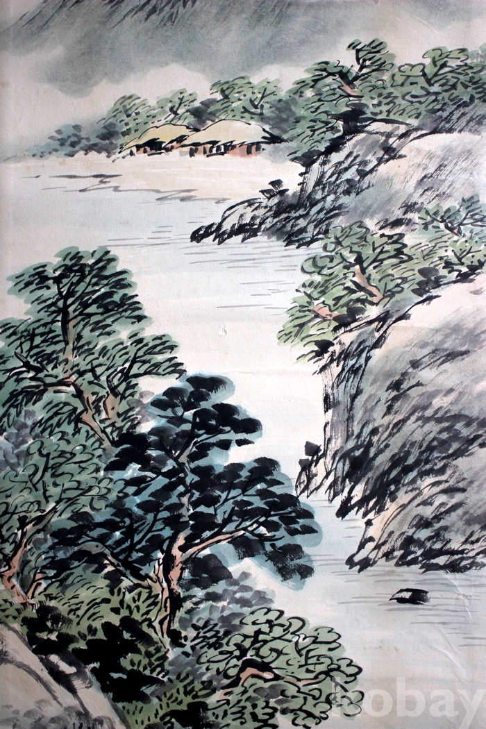국전 5회 입선을 했던 蒼田(창전) 이진실의 작품 (3) - 초가집이 있는 한가로운 강가의 여름풍경