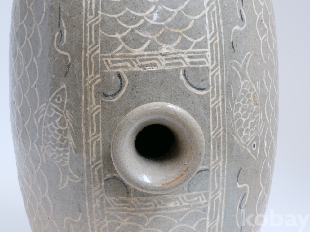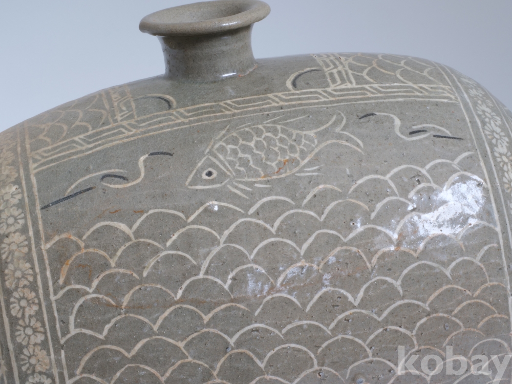 분청사기흑백상감어문장군 입니다.