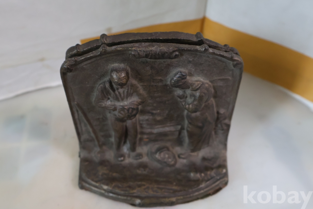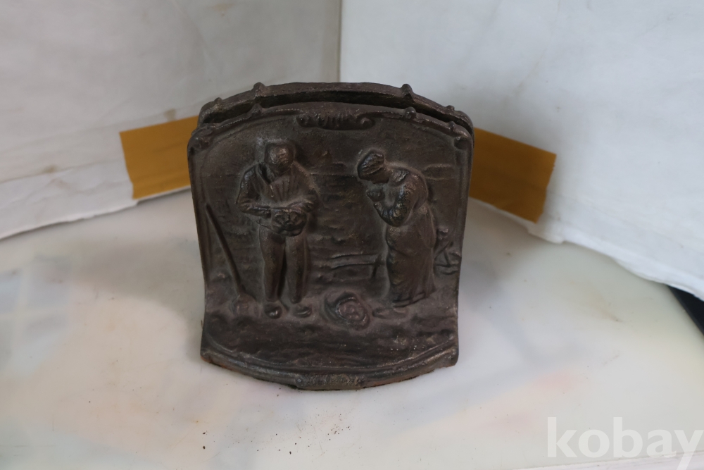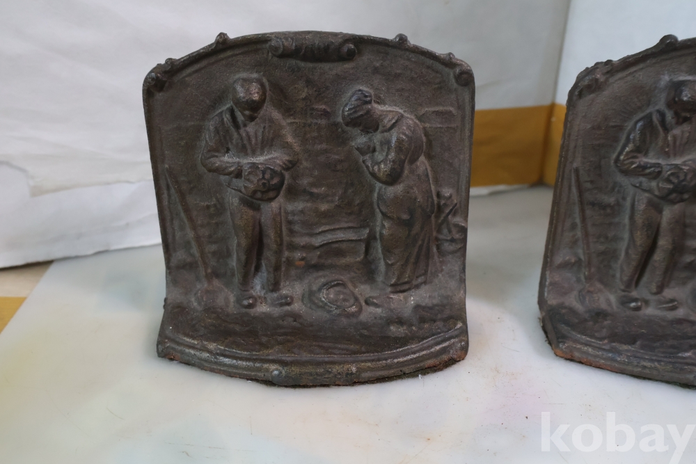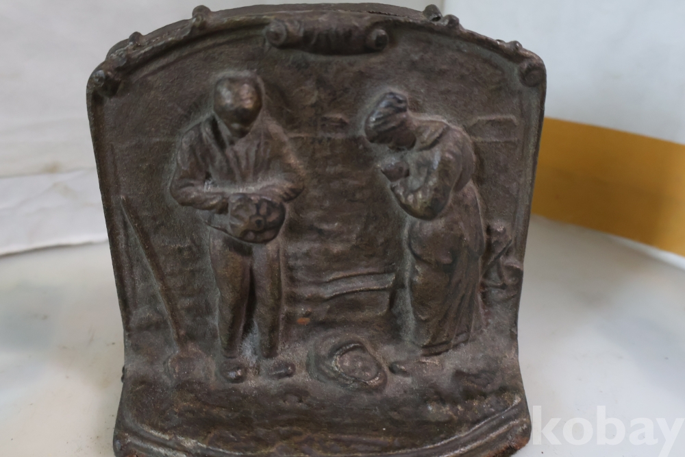 1920 30대 미국에서 만든 철 구리 합금 북 엔즈 이며 귀한 기도하는 부부의 문양을 가진 명물 임니다 세월을 가진 명품 임니다 사진 참조 하세요