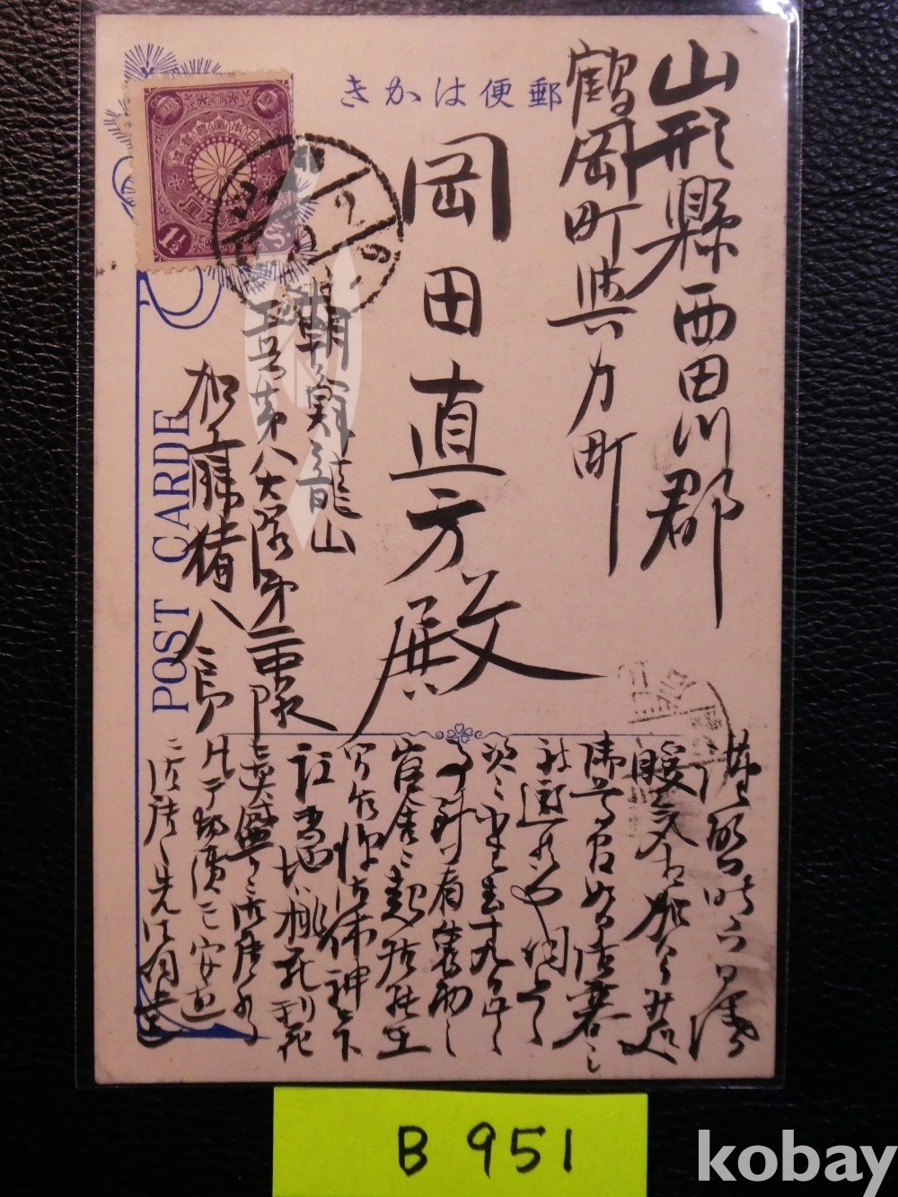 ▣용산 관사의 장교가 야마가타현 지인에게 보낸 엽서로 관사 생활을 언급.