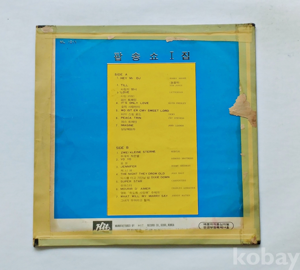 EX : 약간의 마모, 모서리 찢김 존재 음반상태