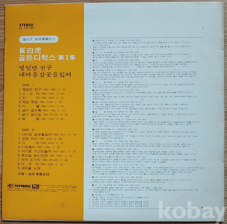 | 자켓상태 | EX : 약간의 마모, 모서리 찢김 존재 | 음반상태 | EX : 재생에 영향 없는 가벼운 기스 존재 | 발매정보 | 초반 | 가사지여부 | 유 |