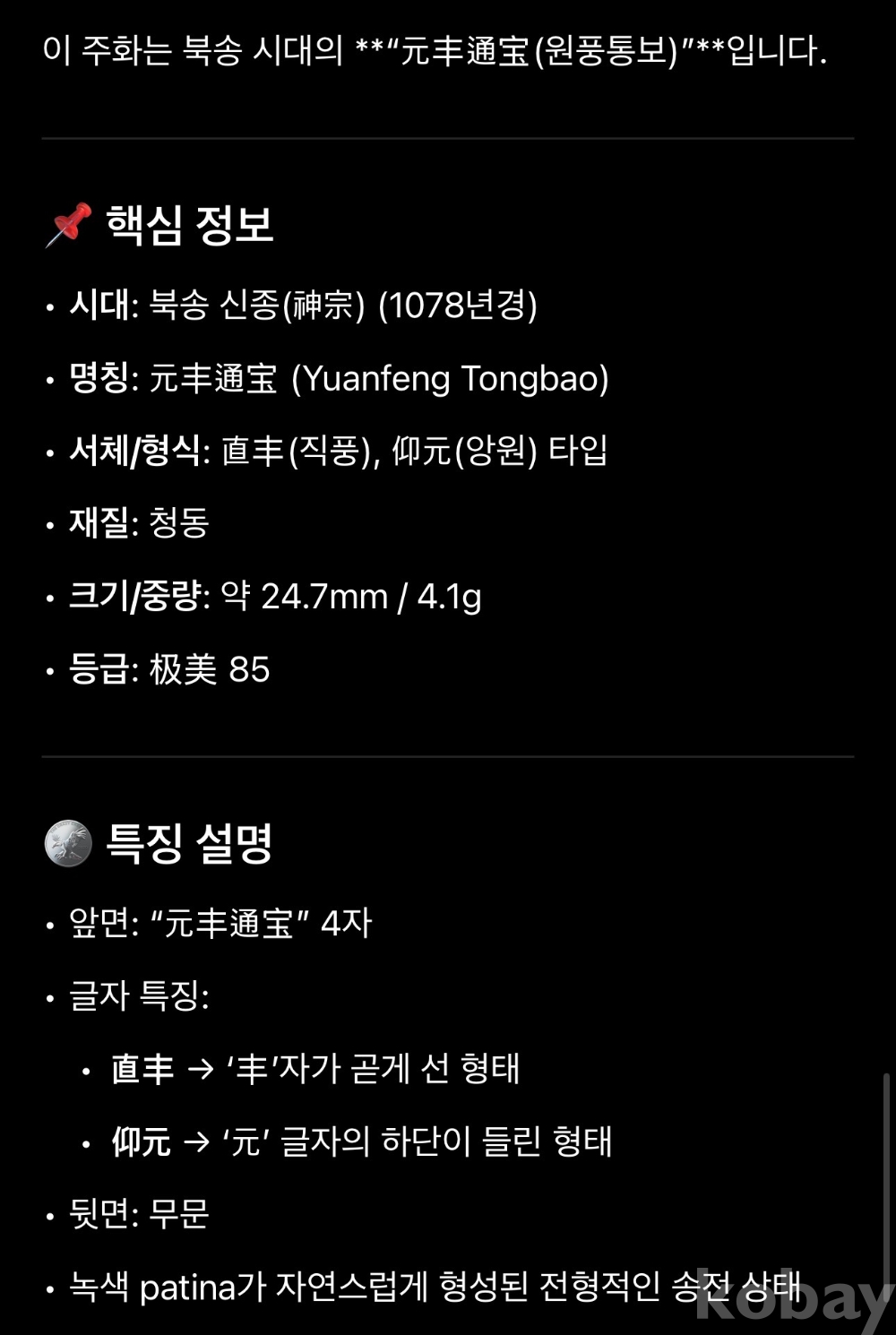 1078년 북송 신종(神宗) 元丰通宝(원풍통보)