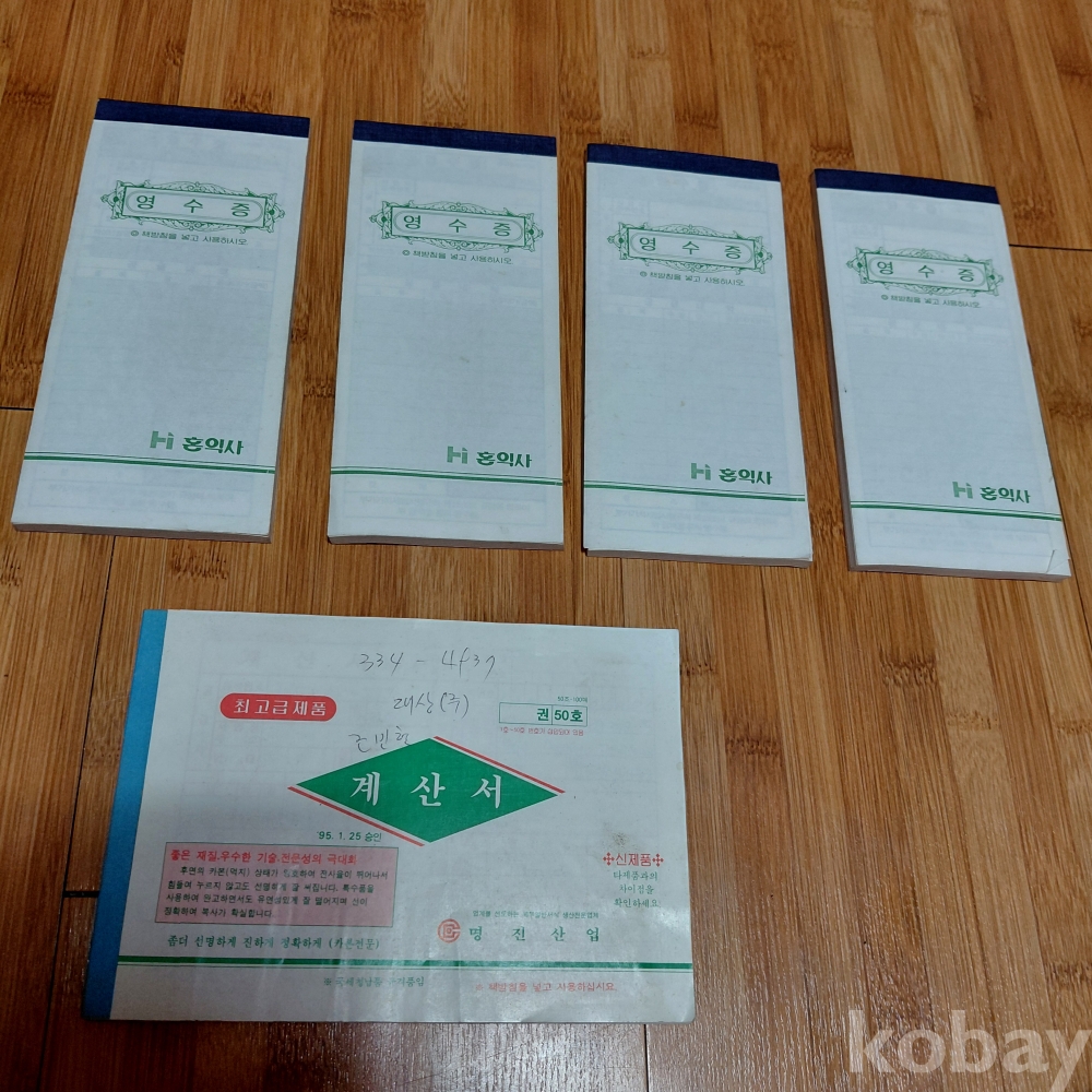 근현대사 80ㅡ90년대 홍익사 미개봉 간이영수첩 ㆍ계산서등 다섯점 일괄 올려드립니다