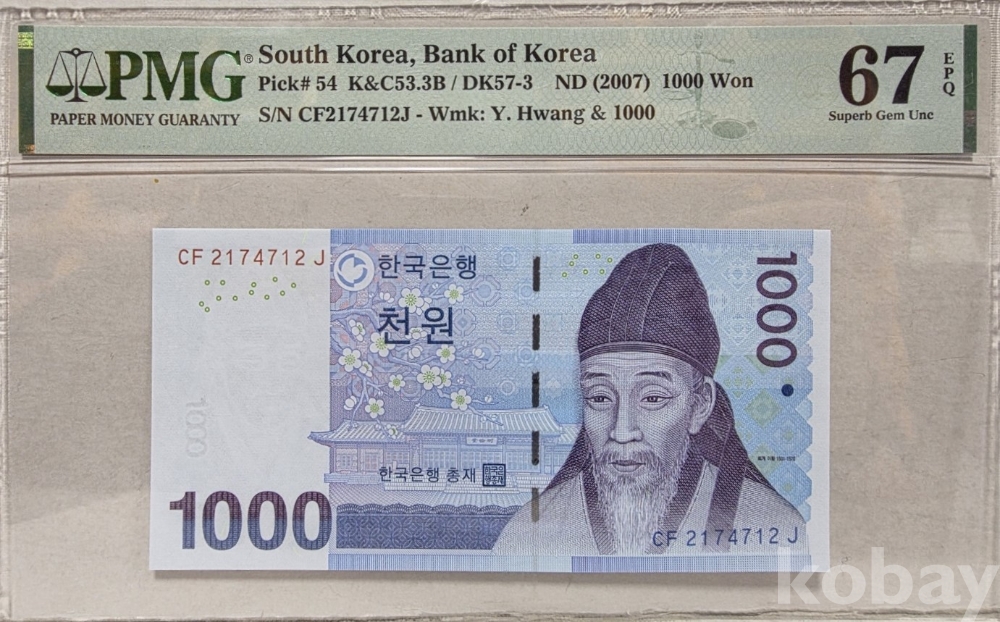 -대한민국 현행권 3차 1000원 "레이더" PMG 67 등급 입니다.