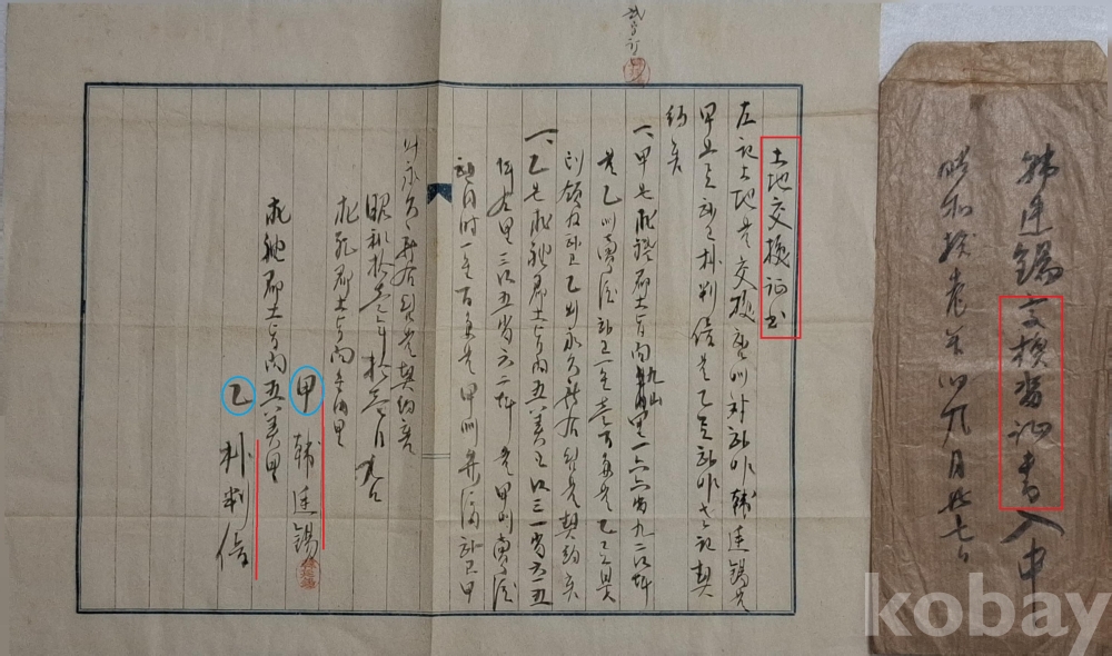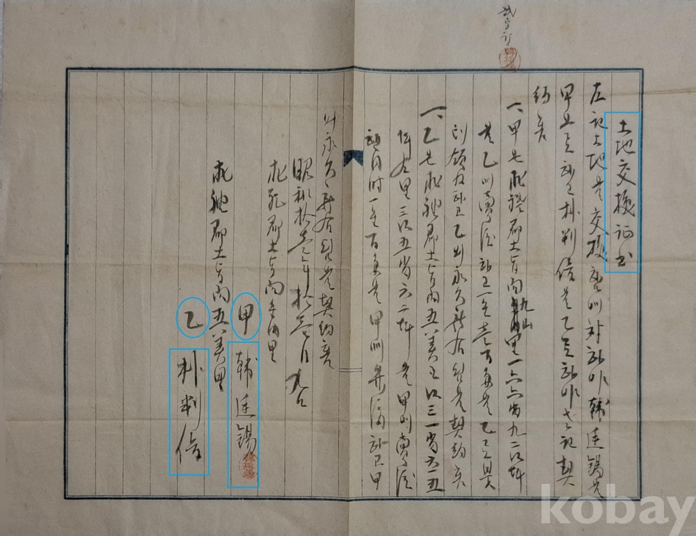 토지를 교환한 증서.