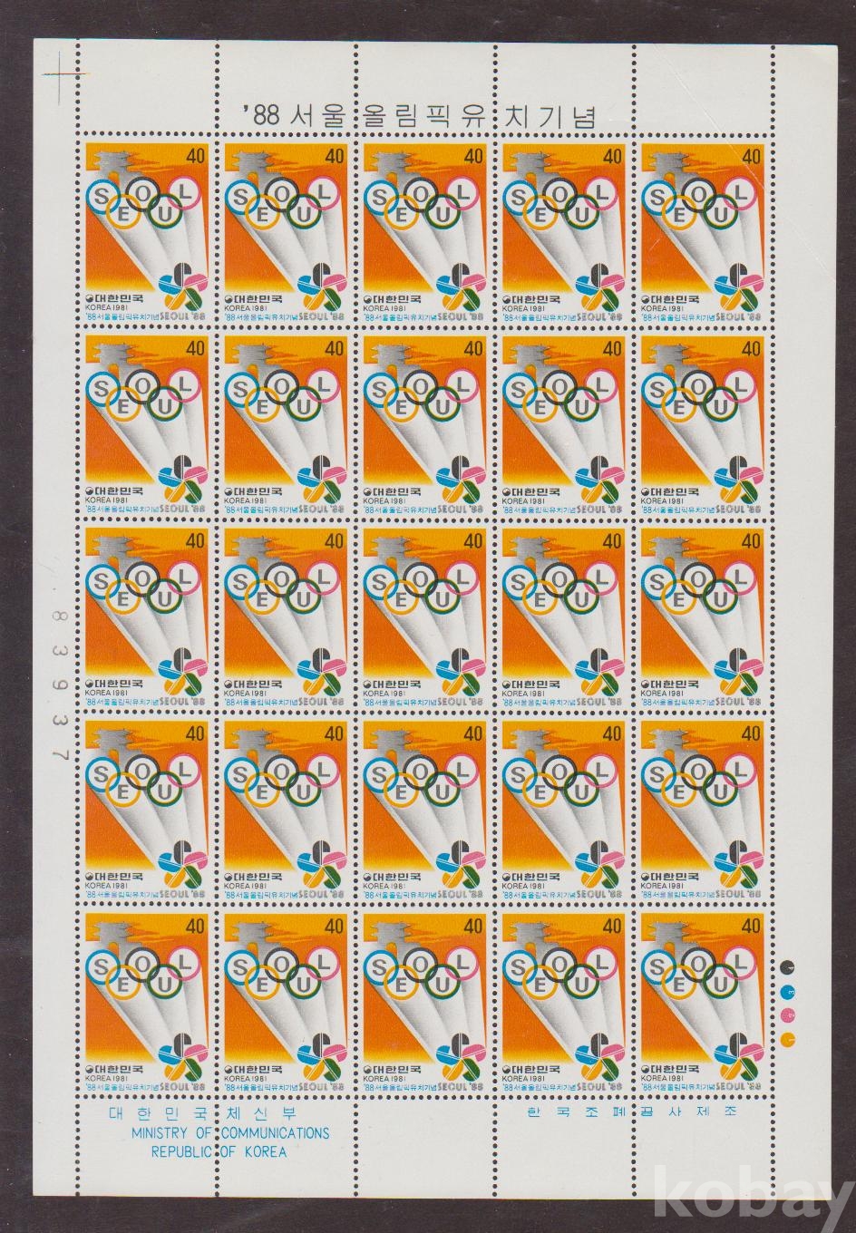(서울올림픽) 1981.10.30 '88 서울올림픽 유치 sheet of 25 MNH