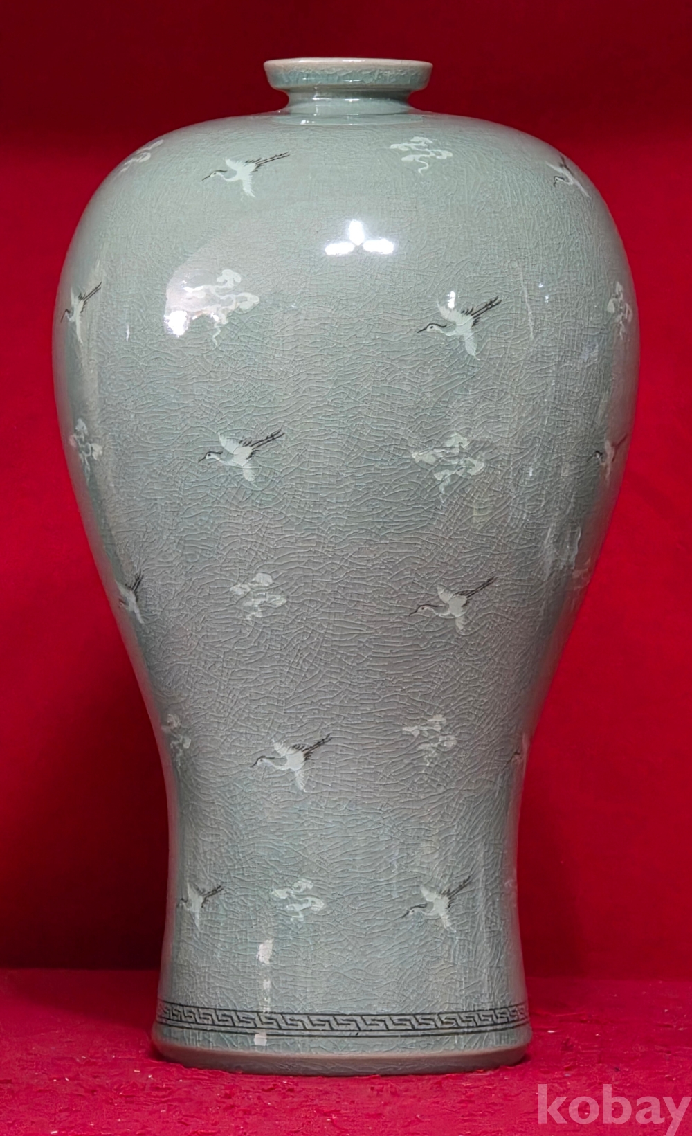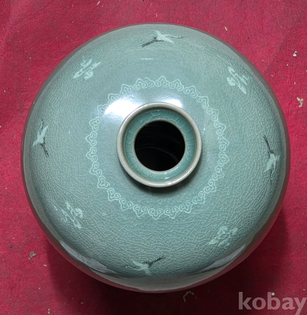 해강 유근형 선생님의 흑백상감 운학문 매병 입니다