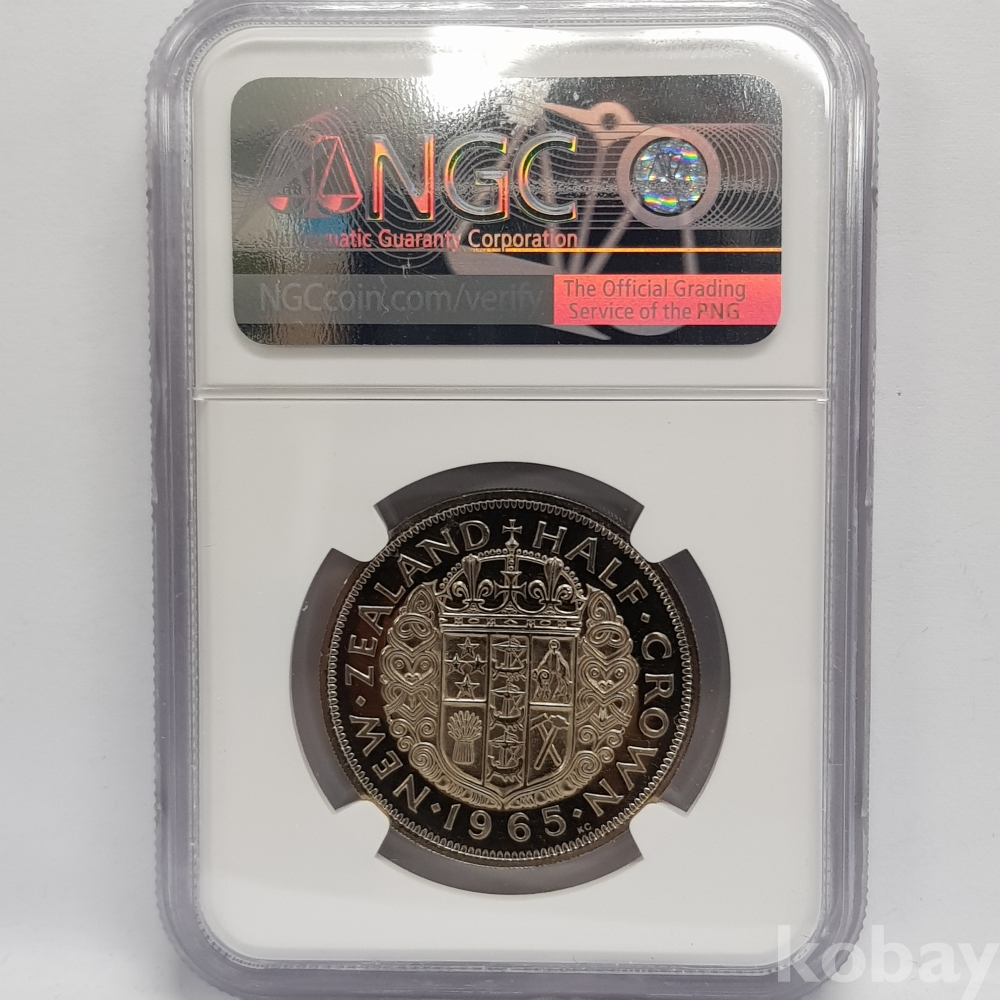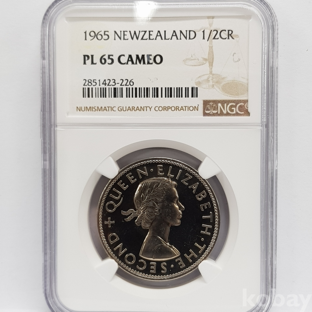- 1965년 뉴질랜드 1/2크라운 NGC PL 65 CAMEO 그레이딩 주화
