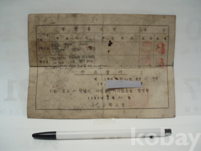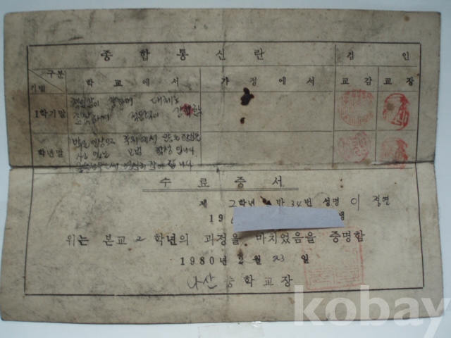 나산중학교 - 생활통지표 (1980년, 전남 함평군)