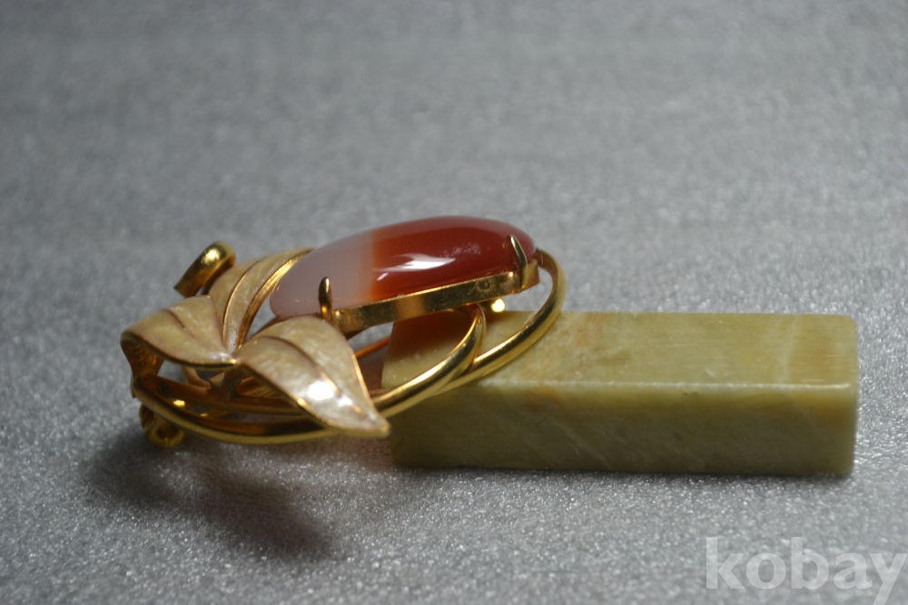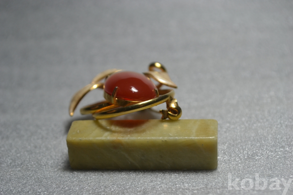 ㅡ> 진한 붉은색상과 흰색문양이 매우 아름다운 최고급 진품 적마노(赤瑪瑙) 보석알이 장식되어진 이쁘고 섬세한 디자인으로 섬세하게 만들어진 고급 진품 적마노브로치 작품 입니다. (사진참조)