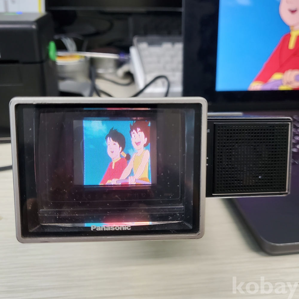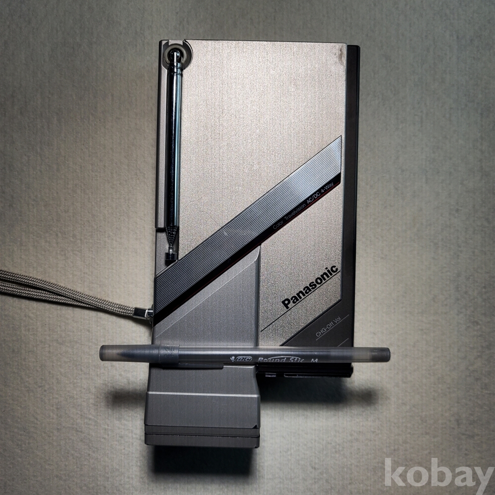 1984년 11월, 일본 마츠시타 전기가 출시한 이 모델은 약 1.5인치 크기의 초소형 컬러 CRT 브라운관을 탑재한, 당시로서는 상상하기 힘든 고도의 정밀 기술이 집약된 제품입니다.
