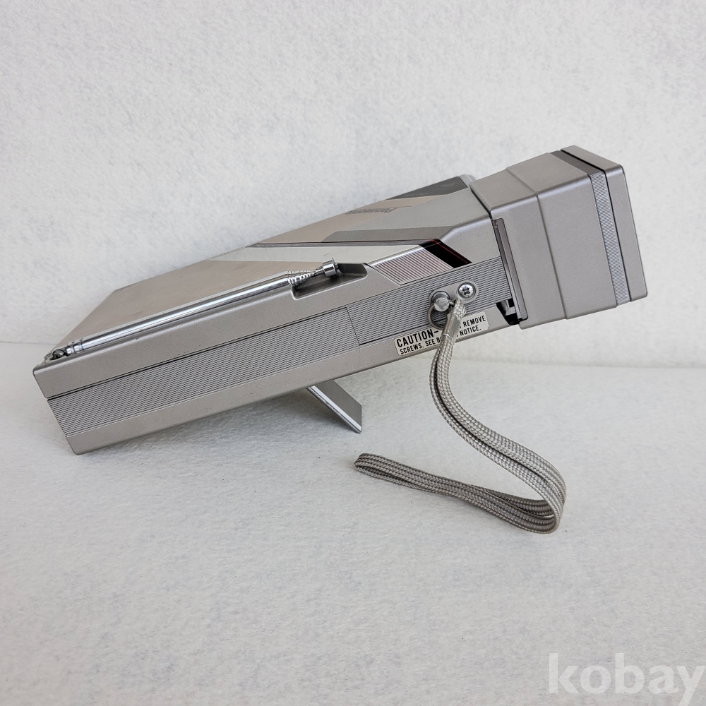 단순한 휴대용 TV를 넘어, 일본 전자산업의 전성기를 이끌었던 파나소닉의 자부심이 담긴 모델입니다. UHF와 VHF 채널 수신은 물론, 측면의 정교한 노브(Knob)들을 통해 색상(Color), 명암(Contrast), 밝기(Bright) 등을 조절할 수 있게 설계된 이 기기는 현대의 디지털 기기에서는 느낄 수 없는 아날로그 특유의 기계적 미학을 고스란히 간직하고 있습니다.