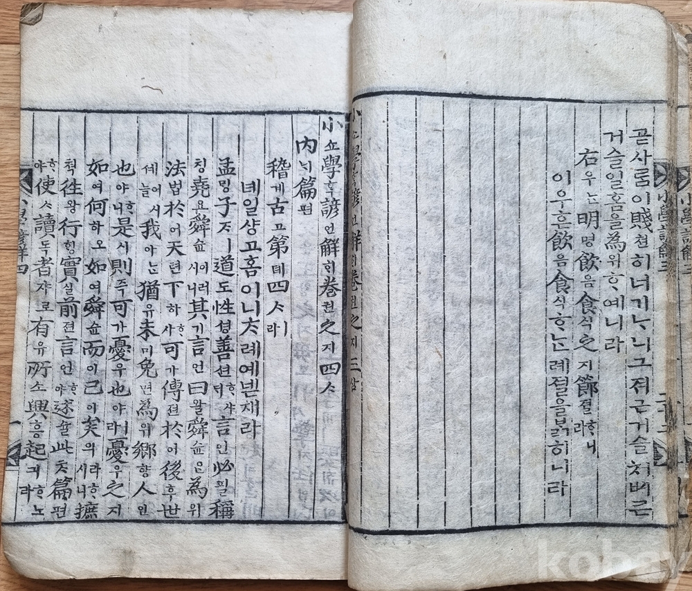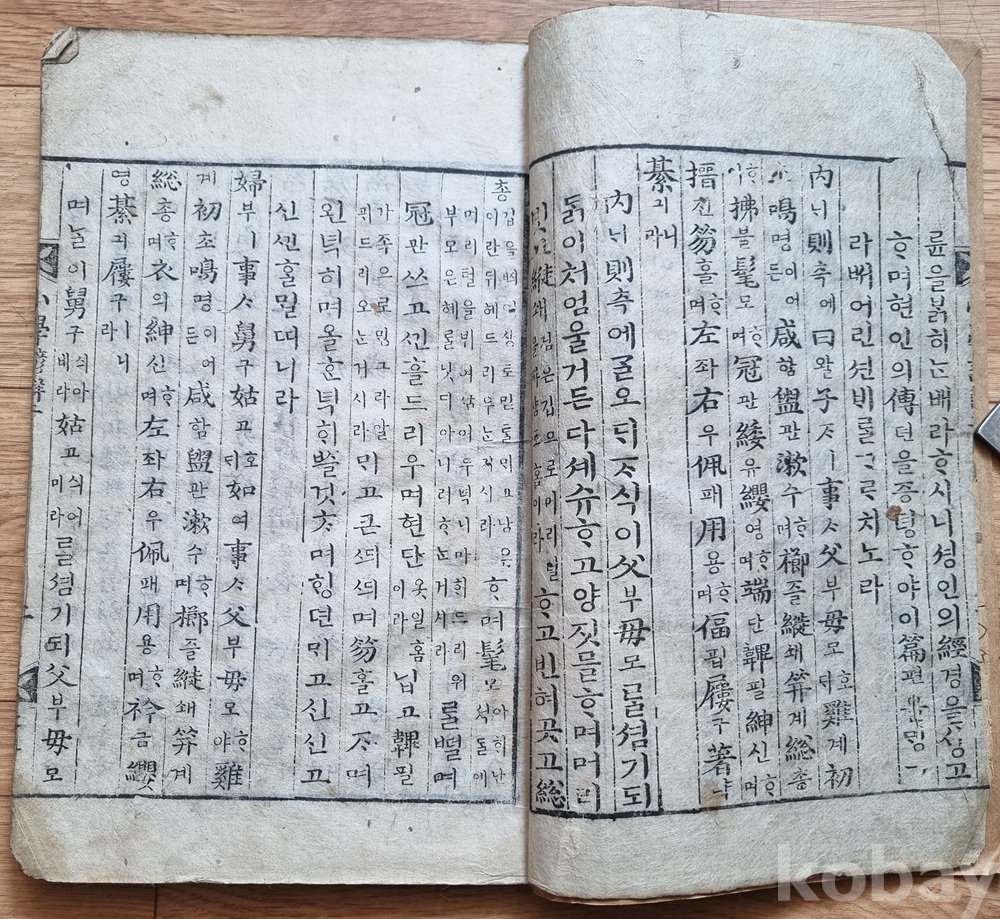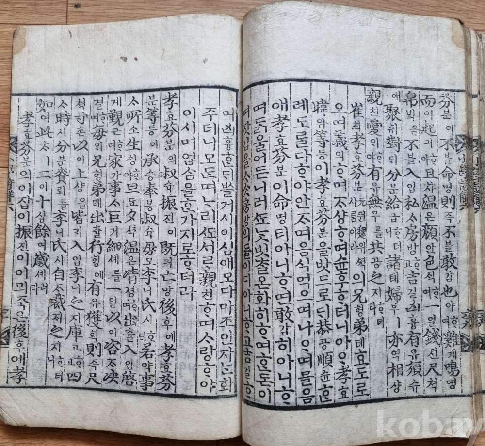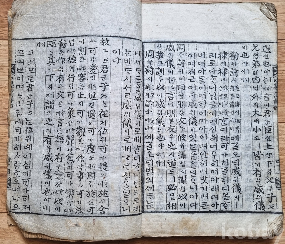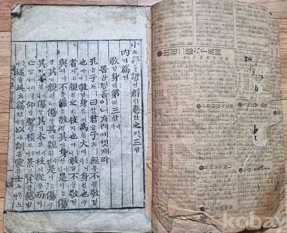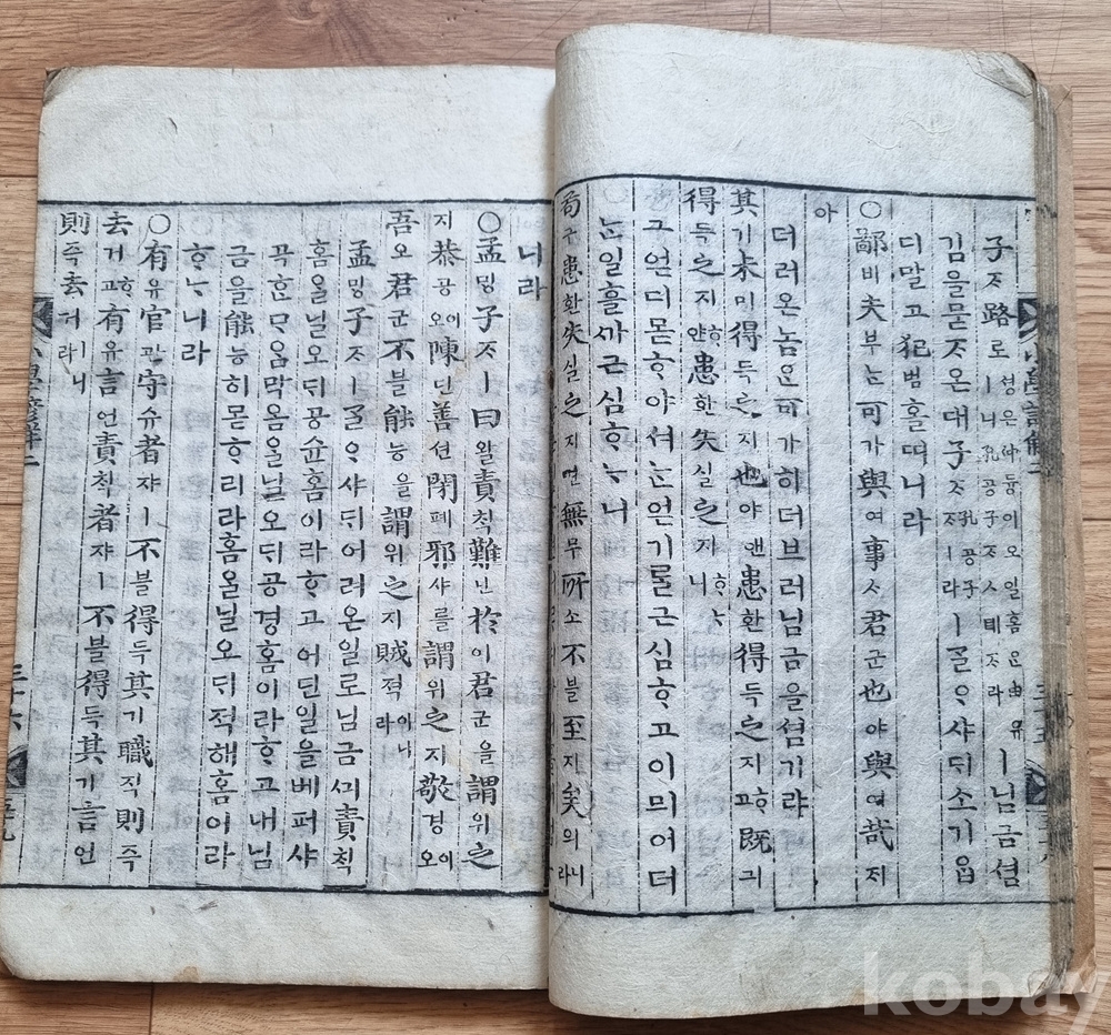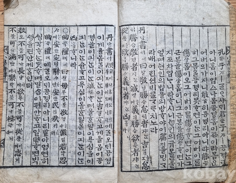판본 특징: 한문 원문에 한글 구결과 번역(언해)이 병기된 형태. 당시 학습용으로 사용된 흔적이 고스란히 남아 있음.