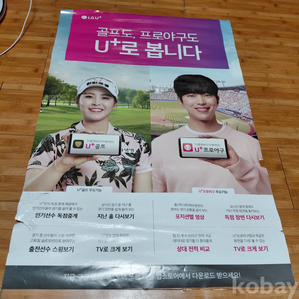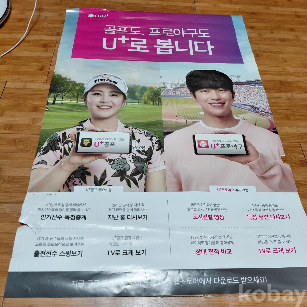 LGU 플러스 골프도ㆍ프로야구도 U플러스 홍보 연예인 광고모델 포스터 군데군데 훼손된 곳있음 사진참고 예민한 분들입찰 정중하게 사양 부탁드립니다