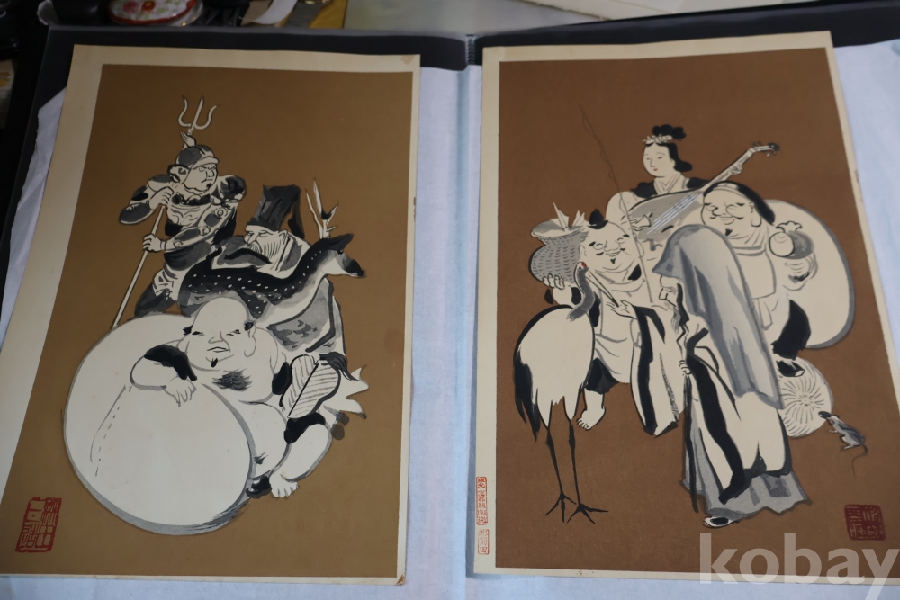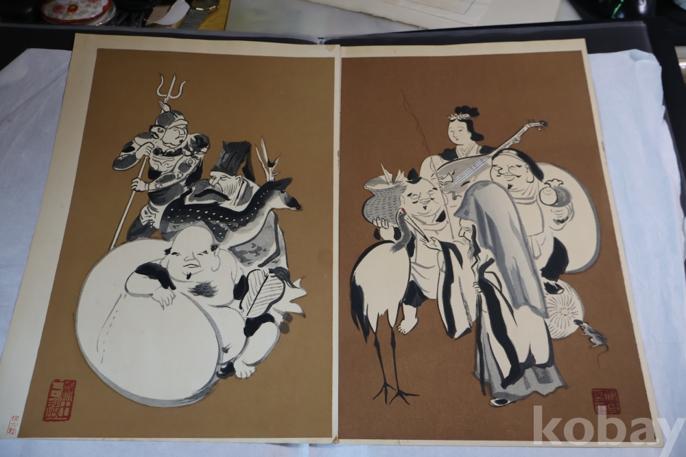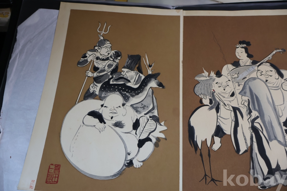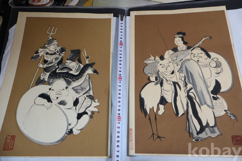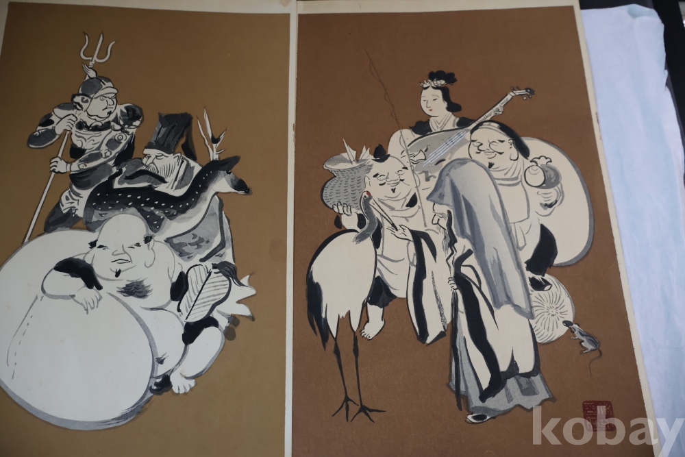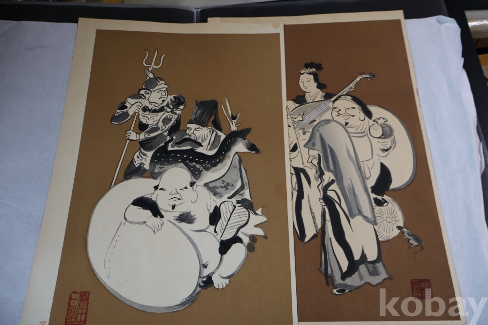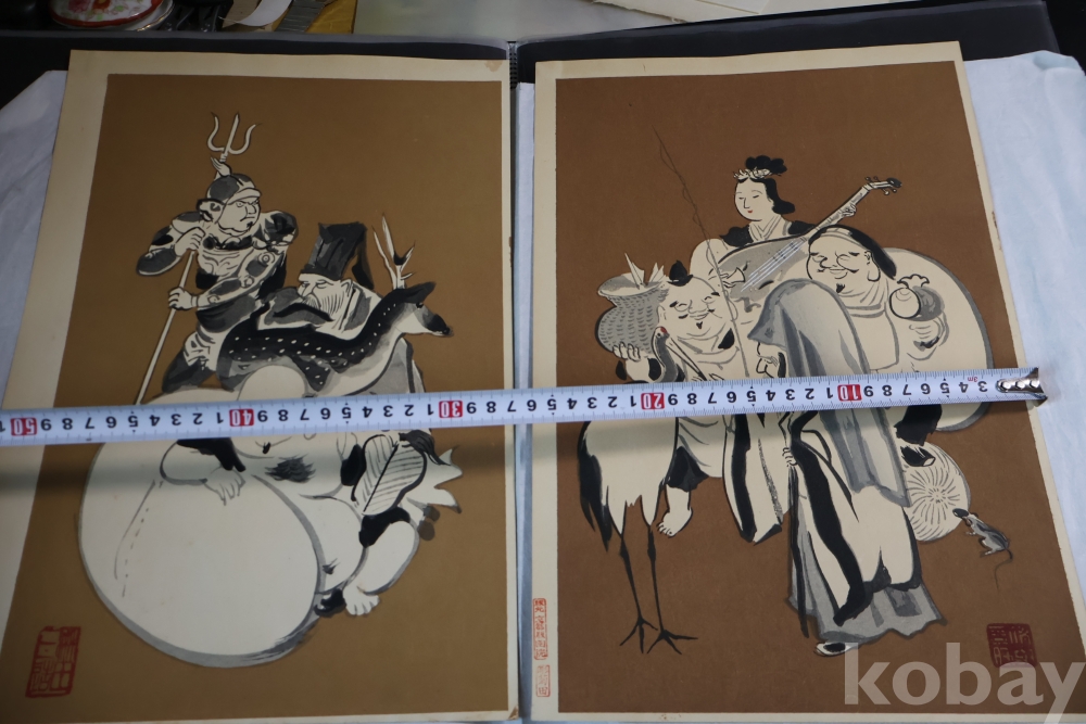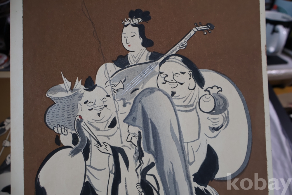 1930 전후의 오리지날 목판화 임니다 일본 특유의 칠복신을 가진 명화 임니다 사진 참조 하세요