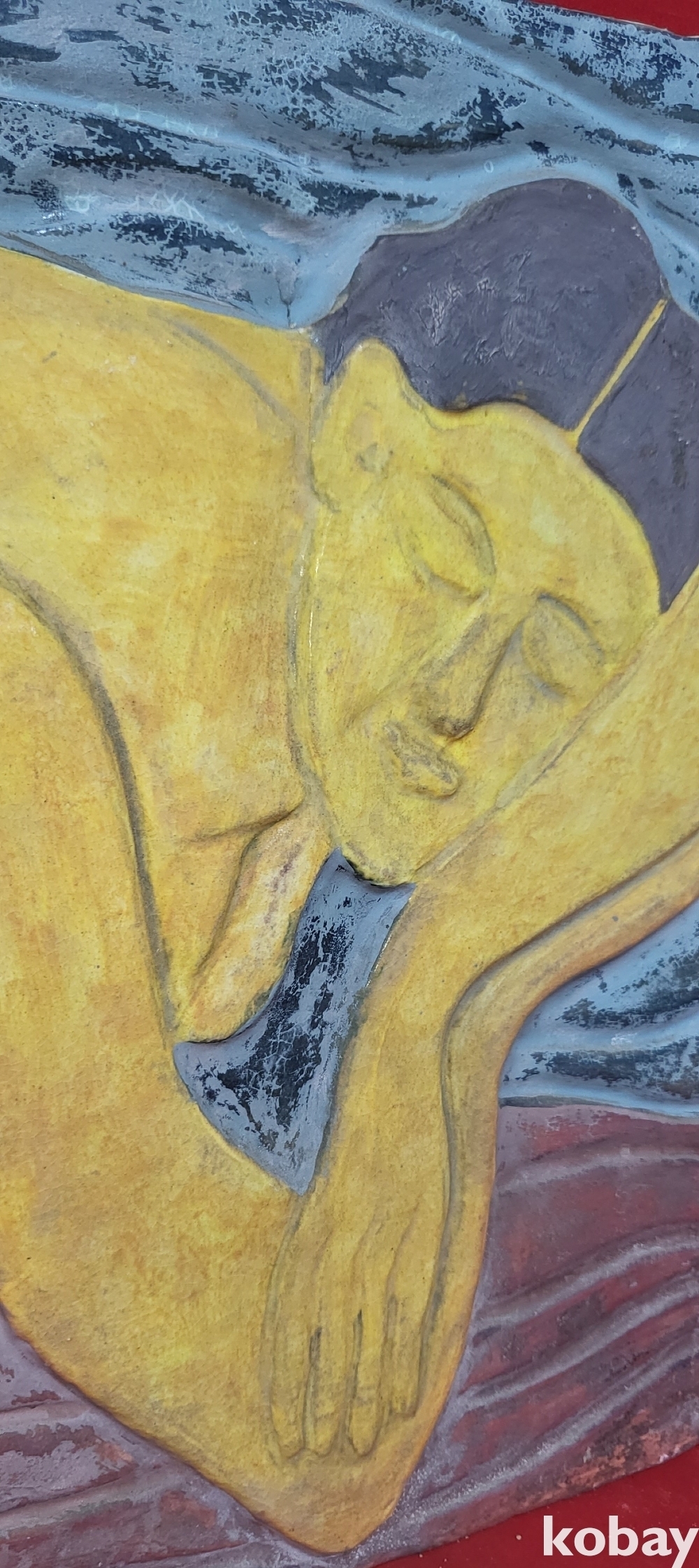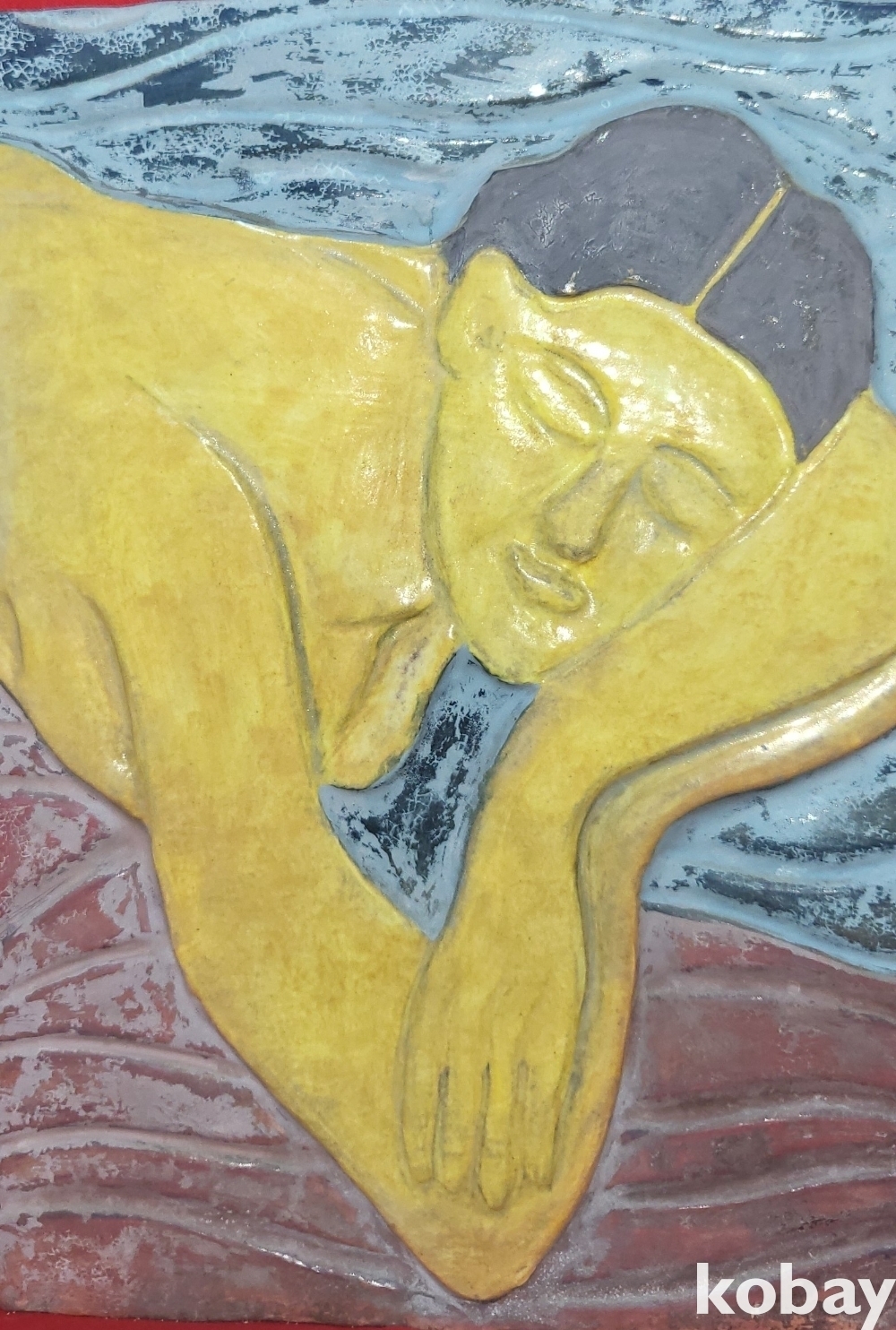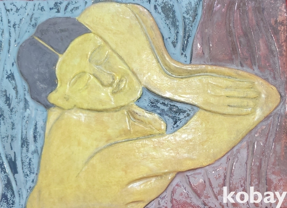 도자기에 그림을 그리고 도자기를 빚는 기법으로 열 처리를 거친 도자기판화입니다,