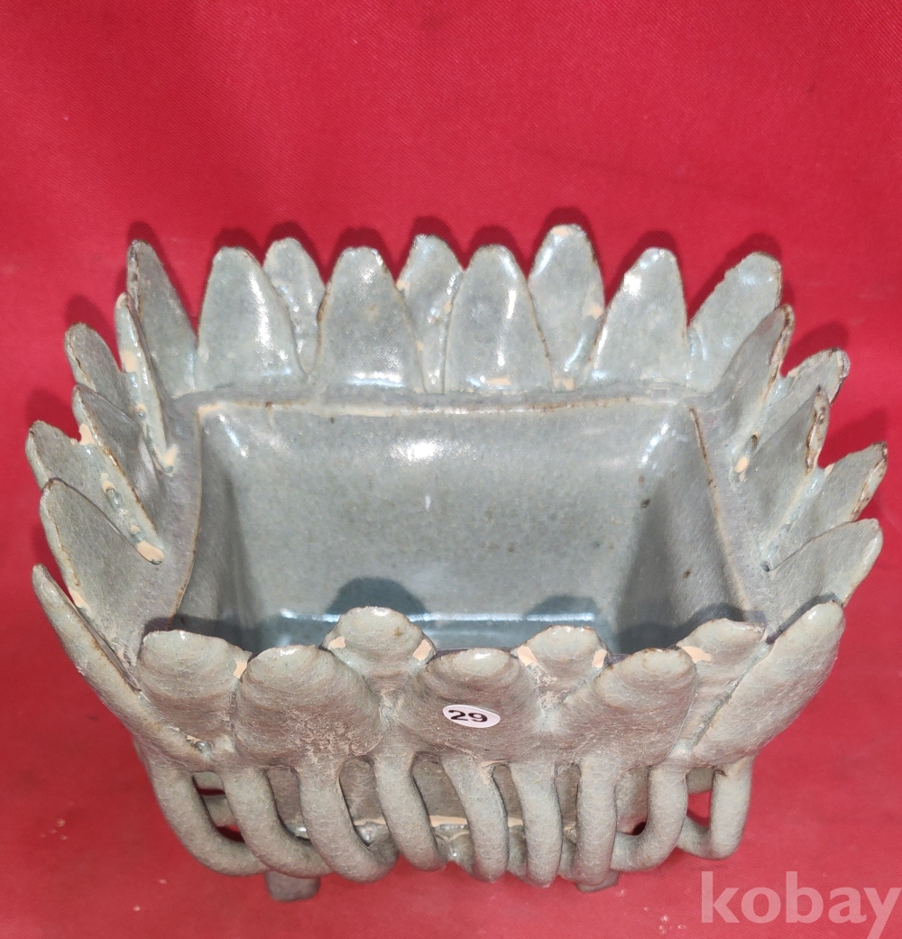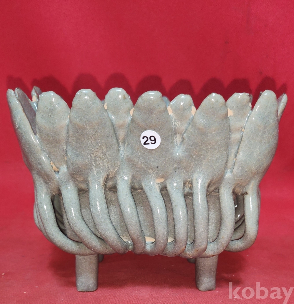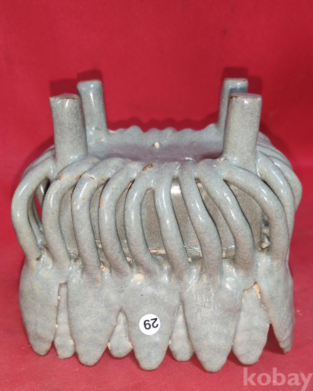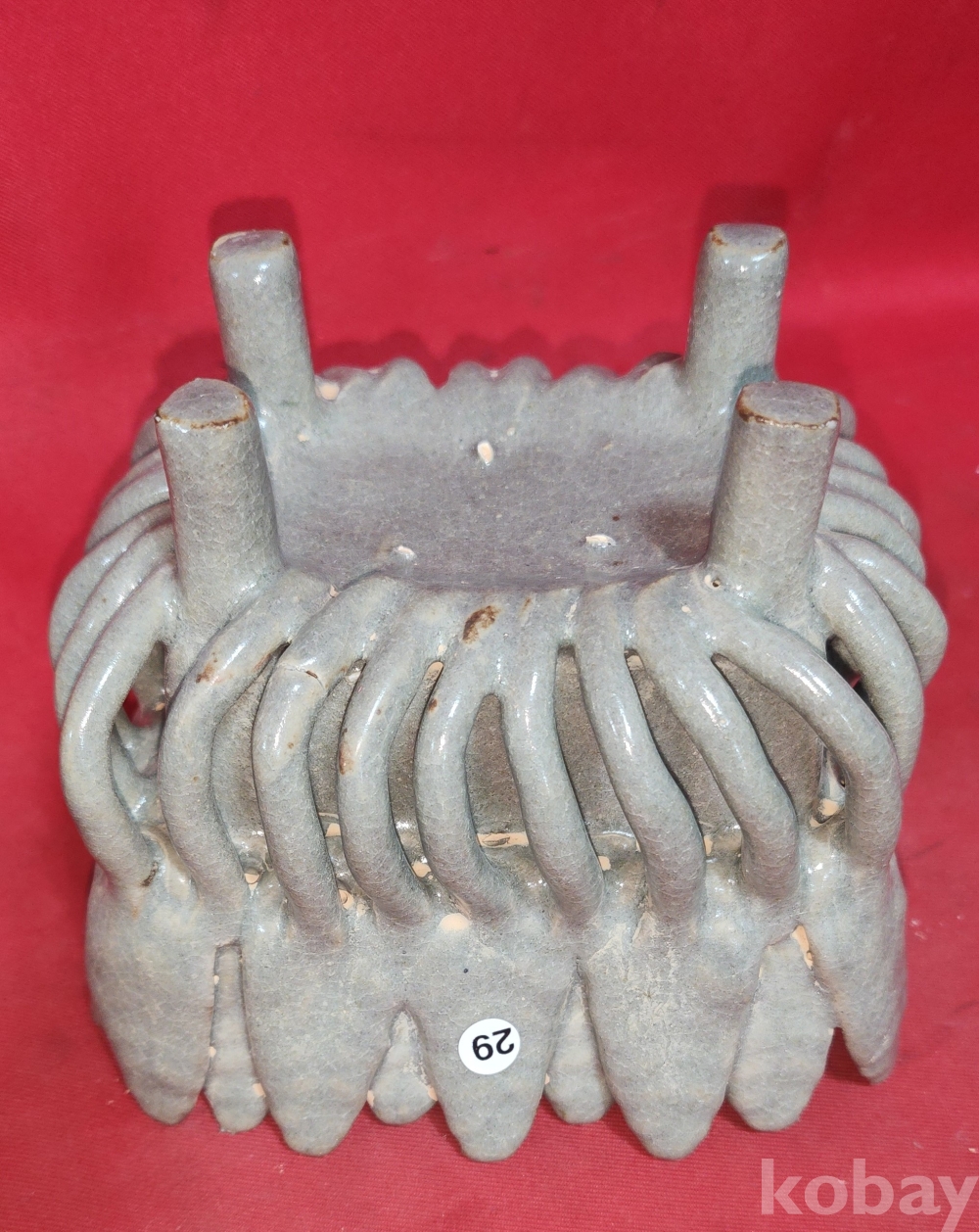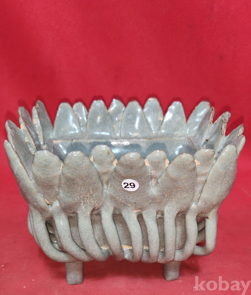 청자 투각 꽃잎 화형 문양 사족 향로겸 향완(香碗)입니다,