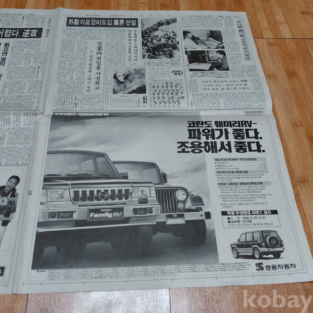 쌍용자동차 코란도훼미리 광고 92년3월30일 올려드립니다
