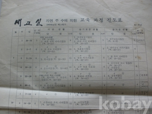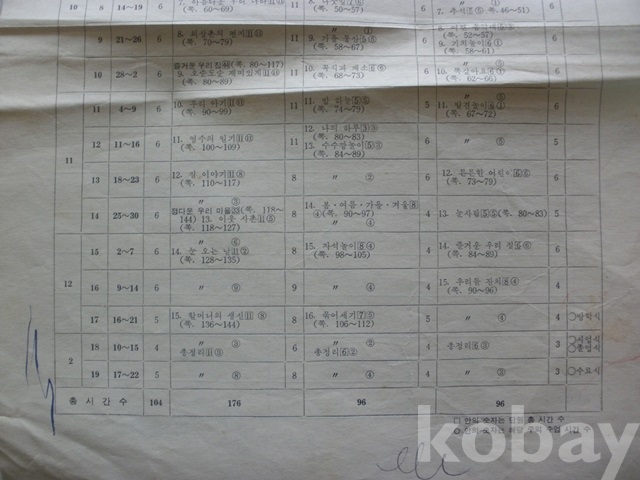 (국민학교 1학년) 자연 주 수에 의한 - 교육 과정 진도표