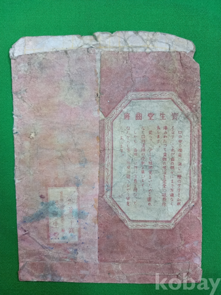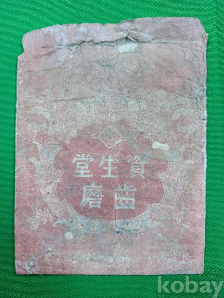 이 포장지는 시세이도가 19세기 말에서 20세기 초, 서양식 치약 제조 기술을 도입하여 제품을 생산하던 근대 상업사의 소중한 자료입니다. 당시 일본어 표기 방식(오른쪽에서 왼쪽으로 읽는 방식)과 문체가 고스란히 남아 있어 근대 유물로서의 가치가 있습니다.