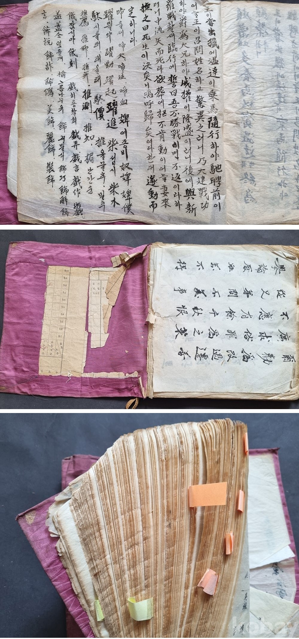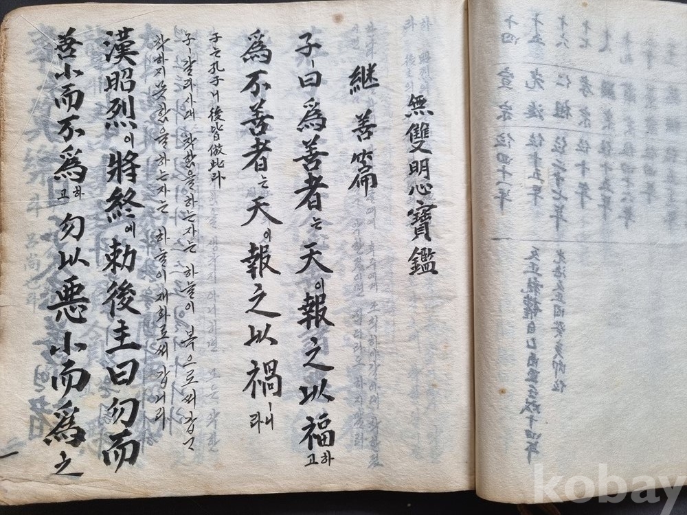 사람이 생활 기록장으로 덧대어 사용한 흔적으로 보입니다. 이러한 '생활사의 흔적' 또한 수집가들에게는 흥미로운 요소입니다.