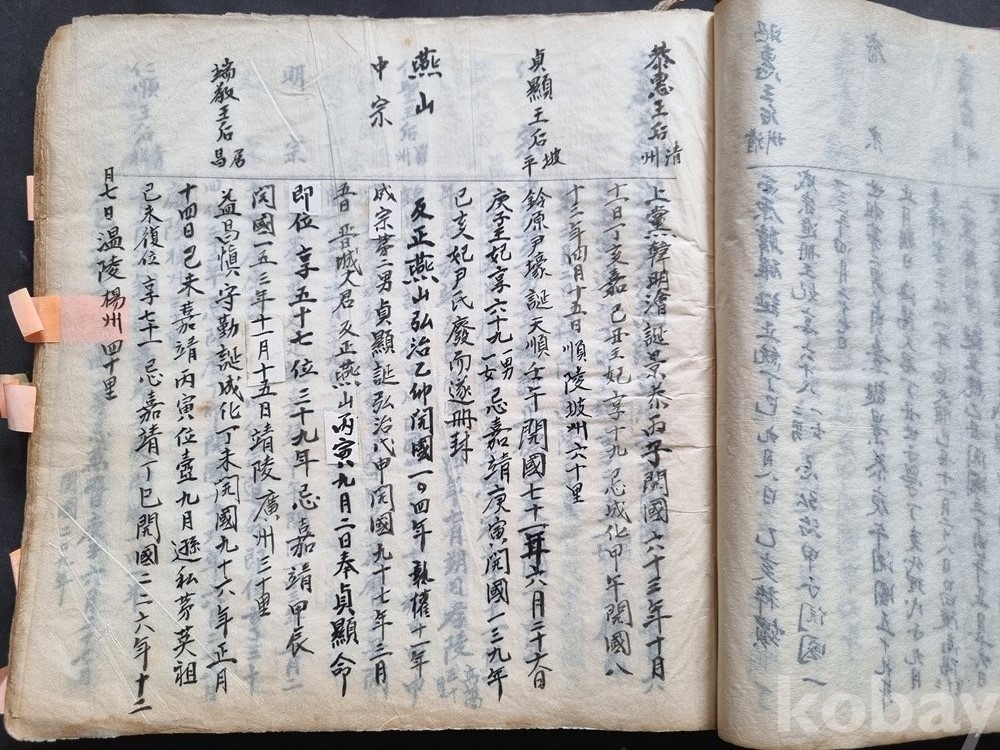 능침 위치 등을 상세히 적은 '선원보략' 계통의 왕실 족보 요약본입니다.