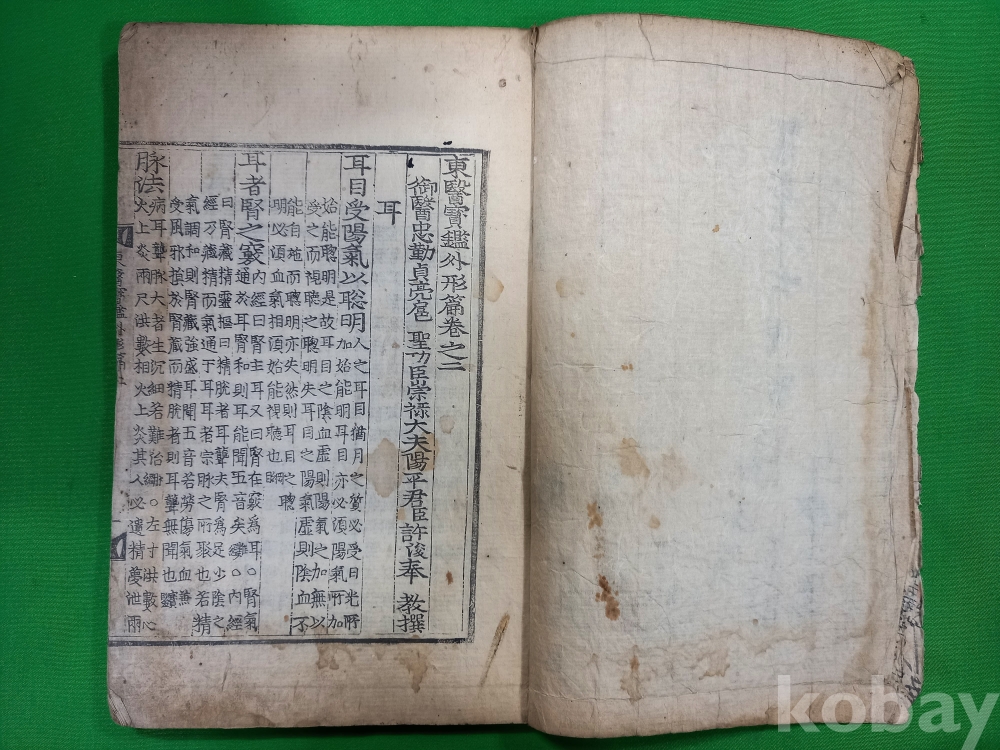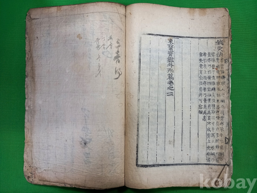 이 고서는 조선시대에 간행된 의학 서적인 《동의보감(東醫寶鑑)》외형편 제2권 입니다