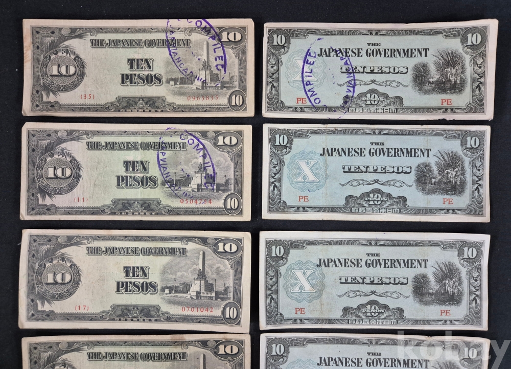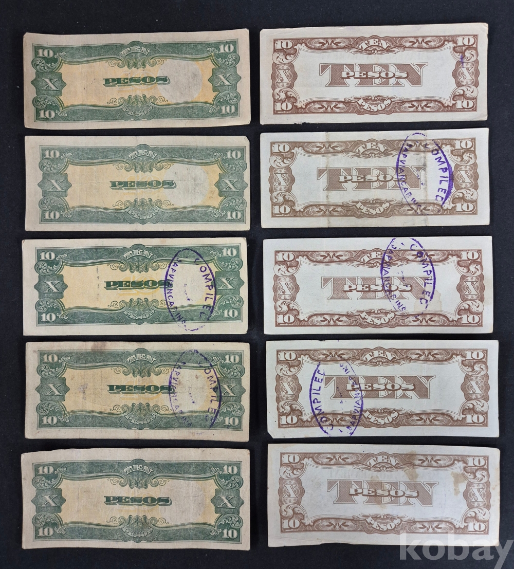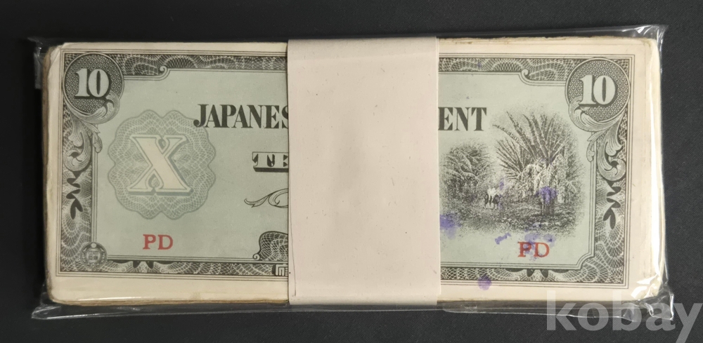 - 태평양 전쟁 일본 군표 10페소 필리핀 사용 약 100장 다발- 군용 수표