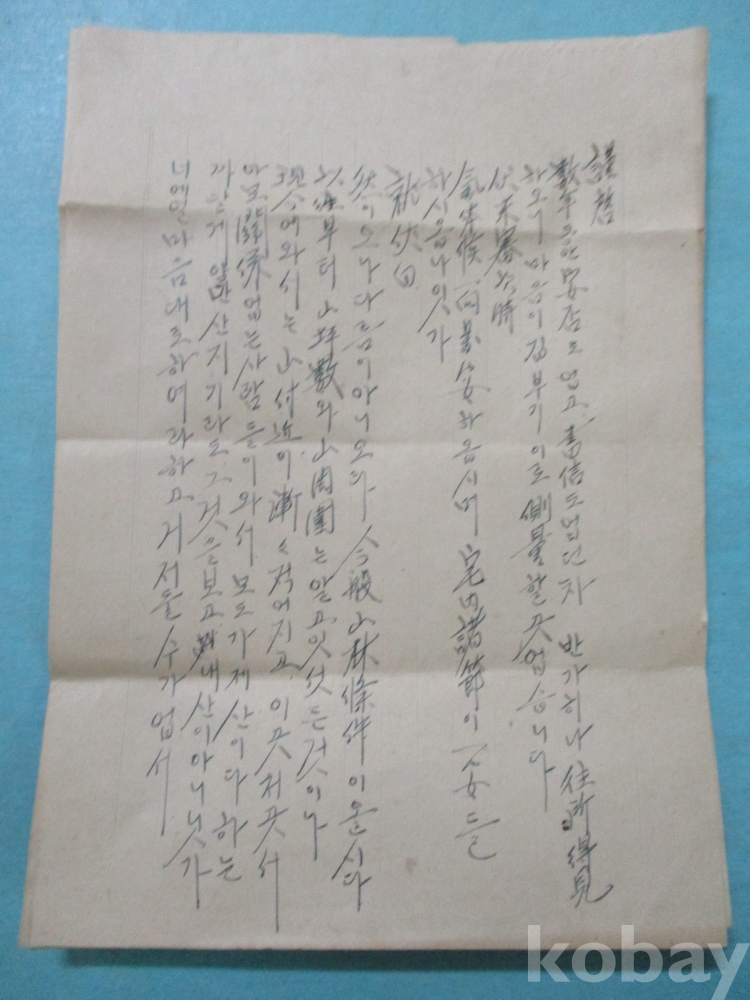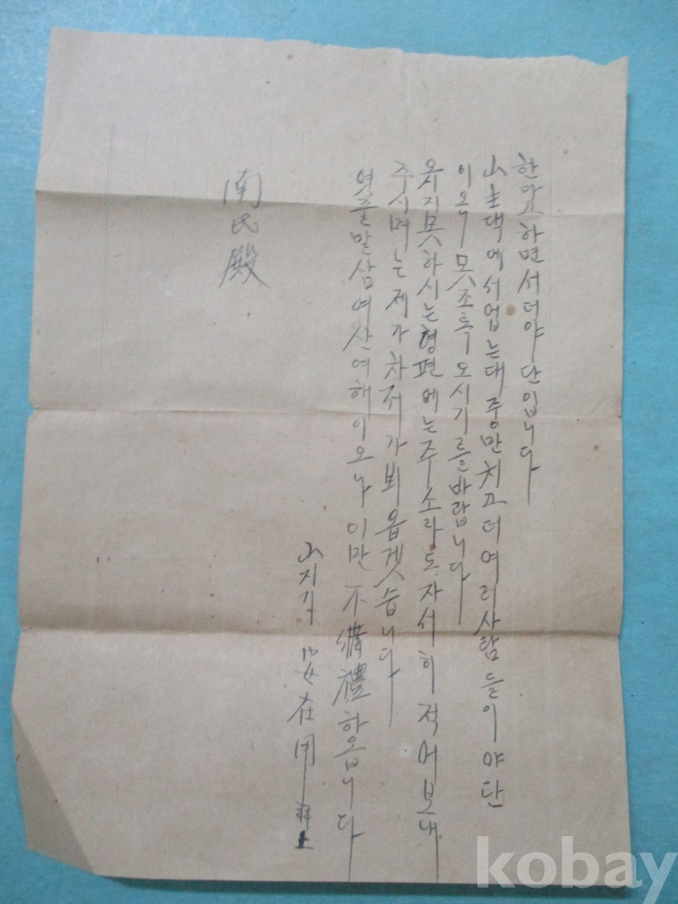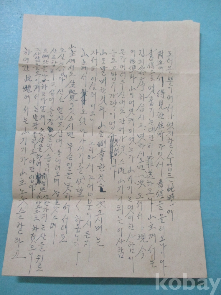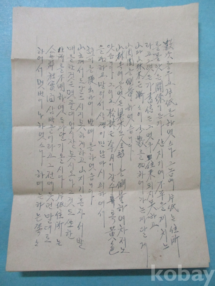 우표없고 소인도 선명하지 못하여 년대 알수없으나 산지기가 보낸편지