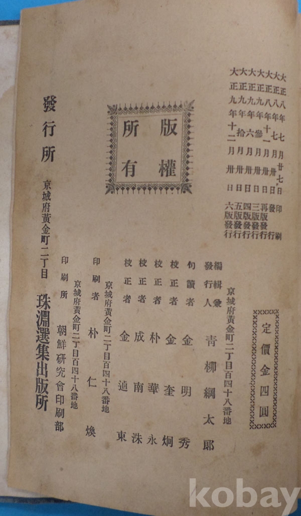 1920년 珠淵選集 全 (고종황제의 문집)*경성부 주연선집출판사 발행, 594 페이지