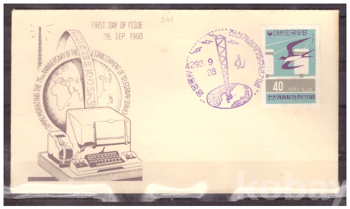 (초일봉피) 1960.9.28 전신 개설 제75주년 기념 FDC (서울중앙 4293.9.28)