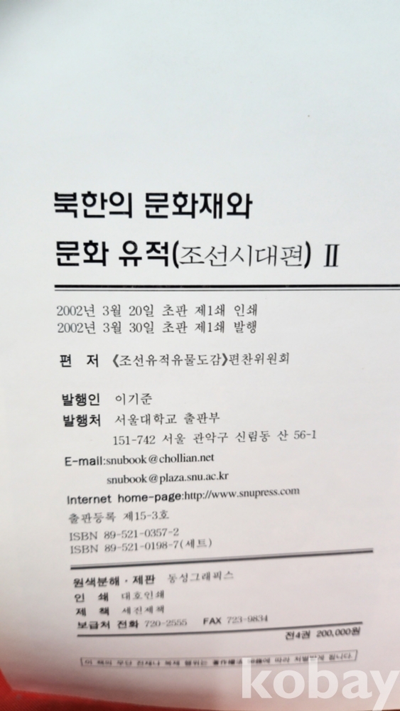 조선시대 사찰 중 북한 문화재와 문화유적 서울대학교 출판부 발행 (2002년)입니다,