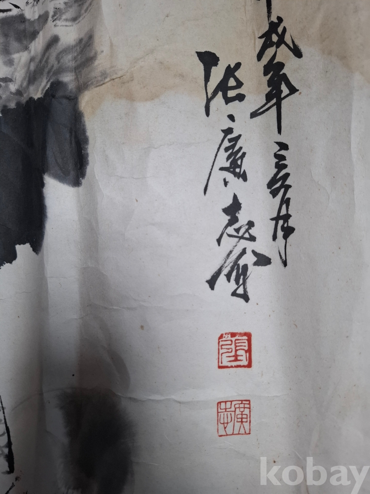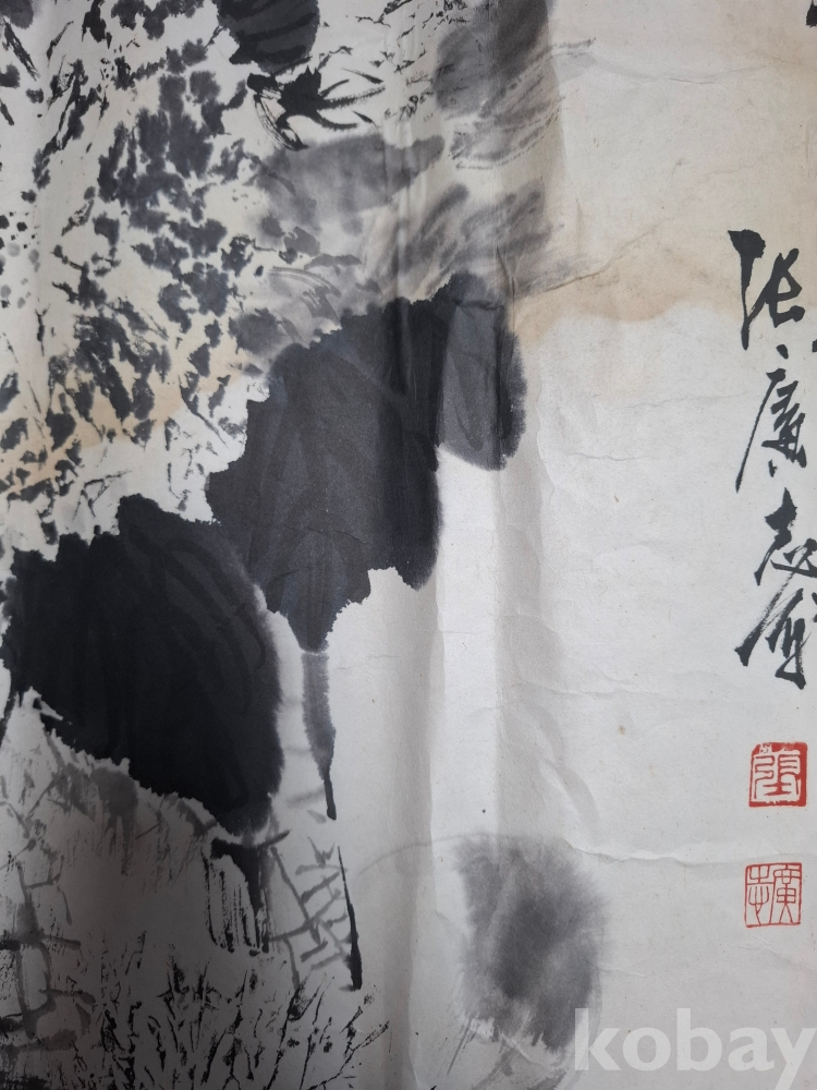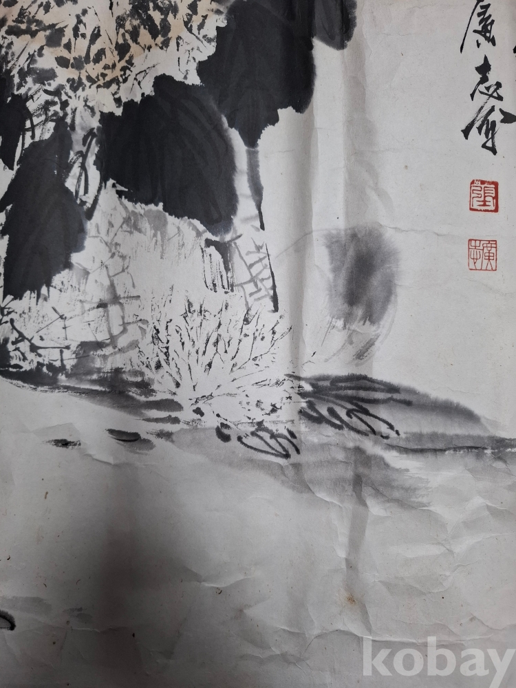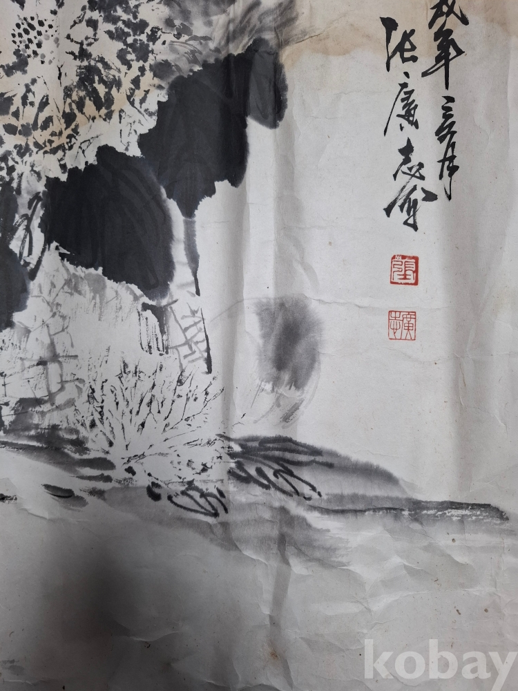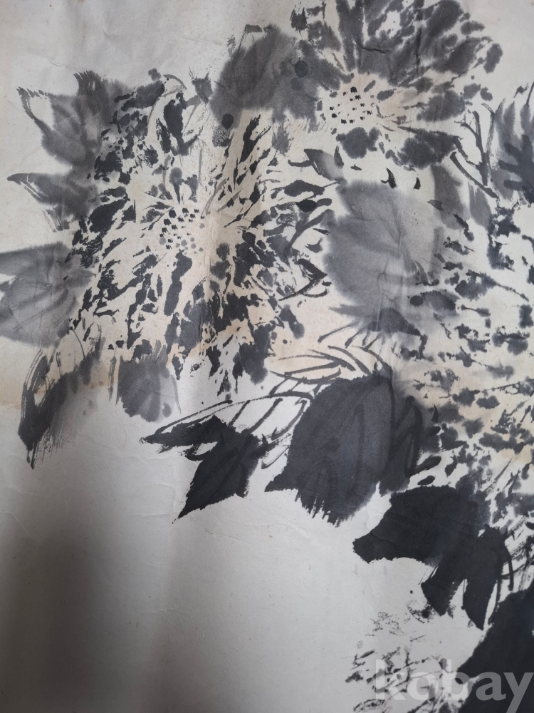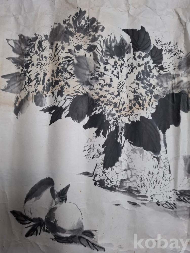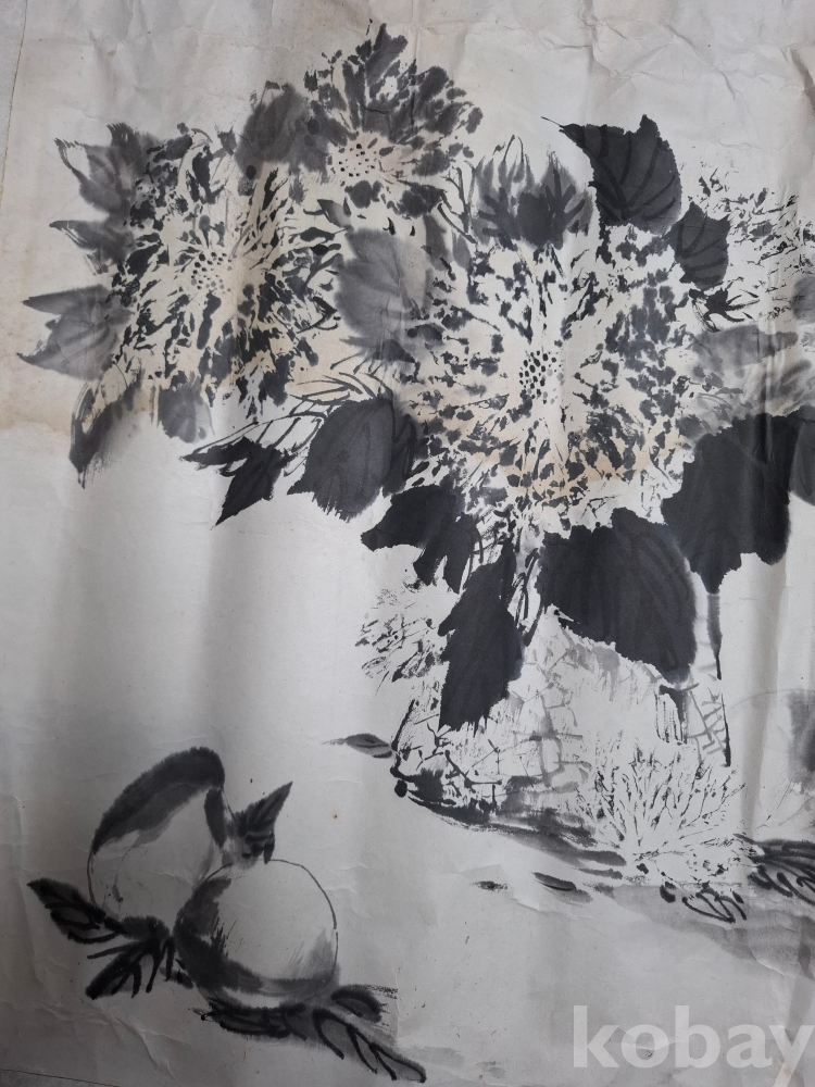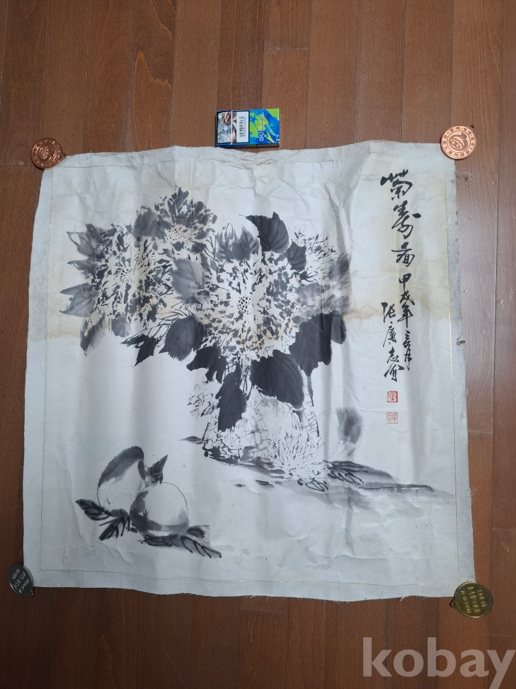 수묵 국화도 (?)----크기:65-63cm (얼룩이 많으며 손상 부위도 없는 것도 있으나 조금 손상이 간 곳도 있으나 대부분 손상은 없습니다 이미지 참고 꼭 참고 바랍니다).낙관 참고 바랍니다