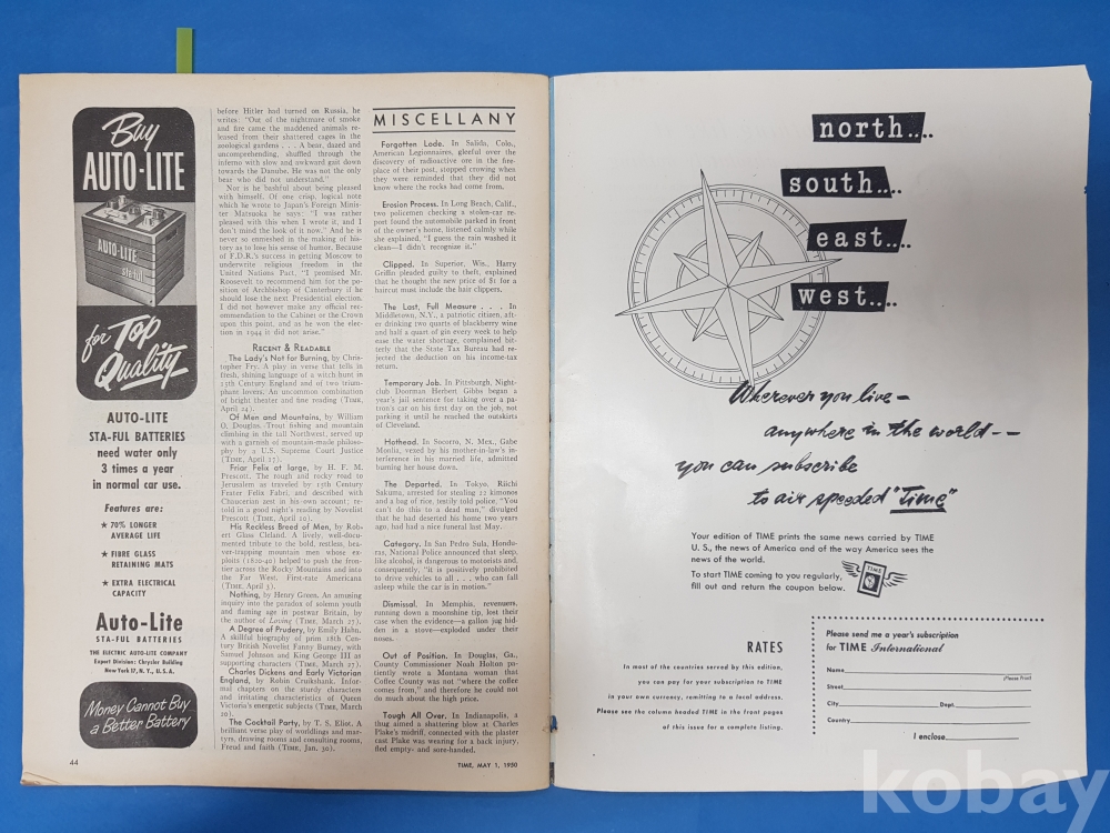 **** TIME 'THE WEEKLY NEWSMAGAZINE'/1950.5.1/44페이지/함기영<마라톤> 포함