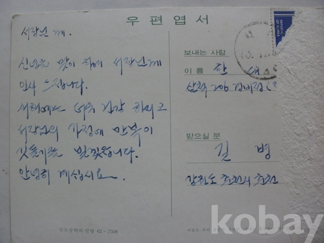 삼척 206경비정에서 - 서장님 께 신년을 마지하여..원호장학회발행 우편엽서 (1973년)
