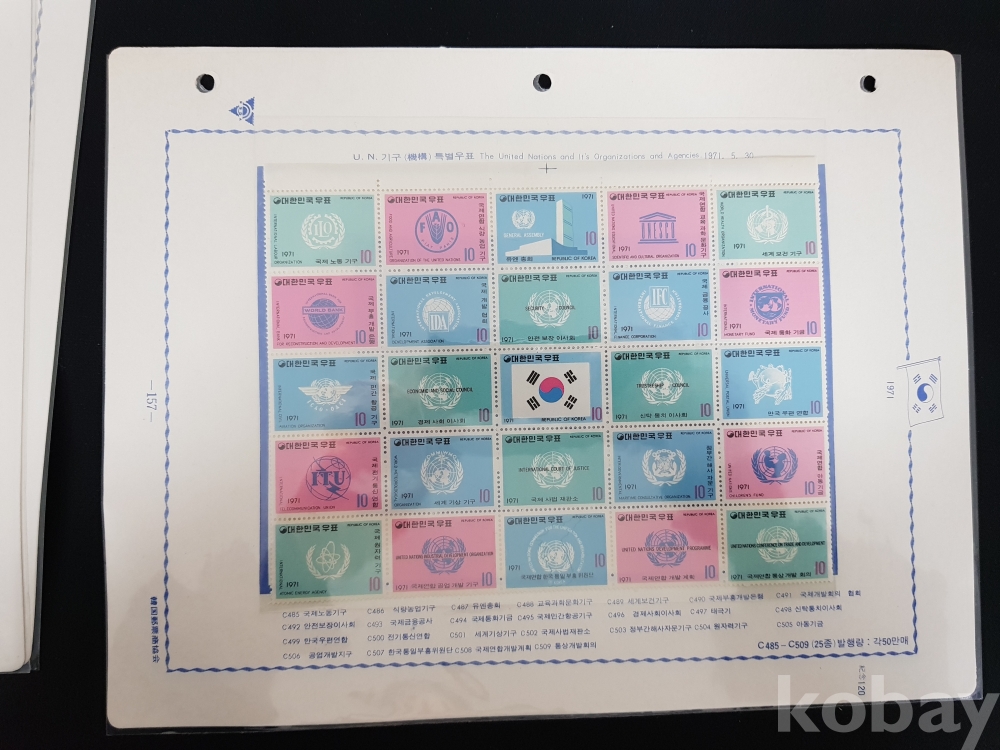 - 1971년 UN기구 특별우표 전지 등 모음 / 앨범해체분