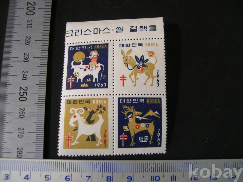 1963년 씰 #3636 : (소 + 양 + 양 + 사슴) - 상변지부 4종블럭