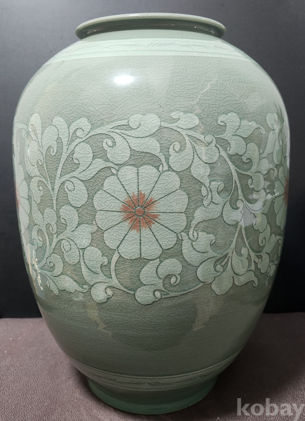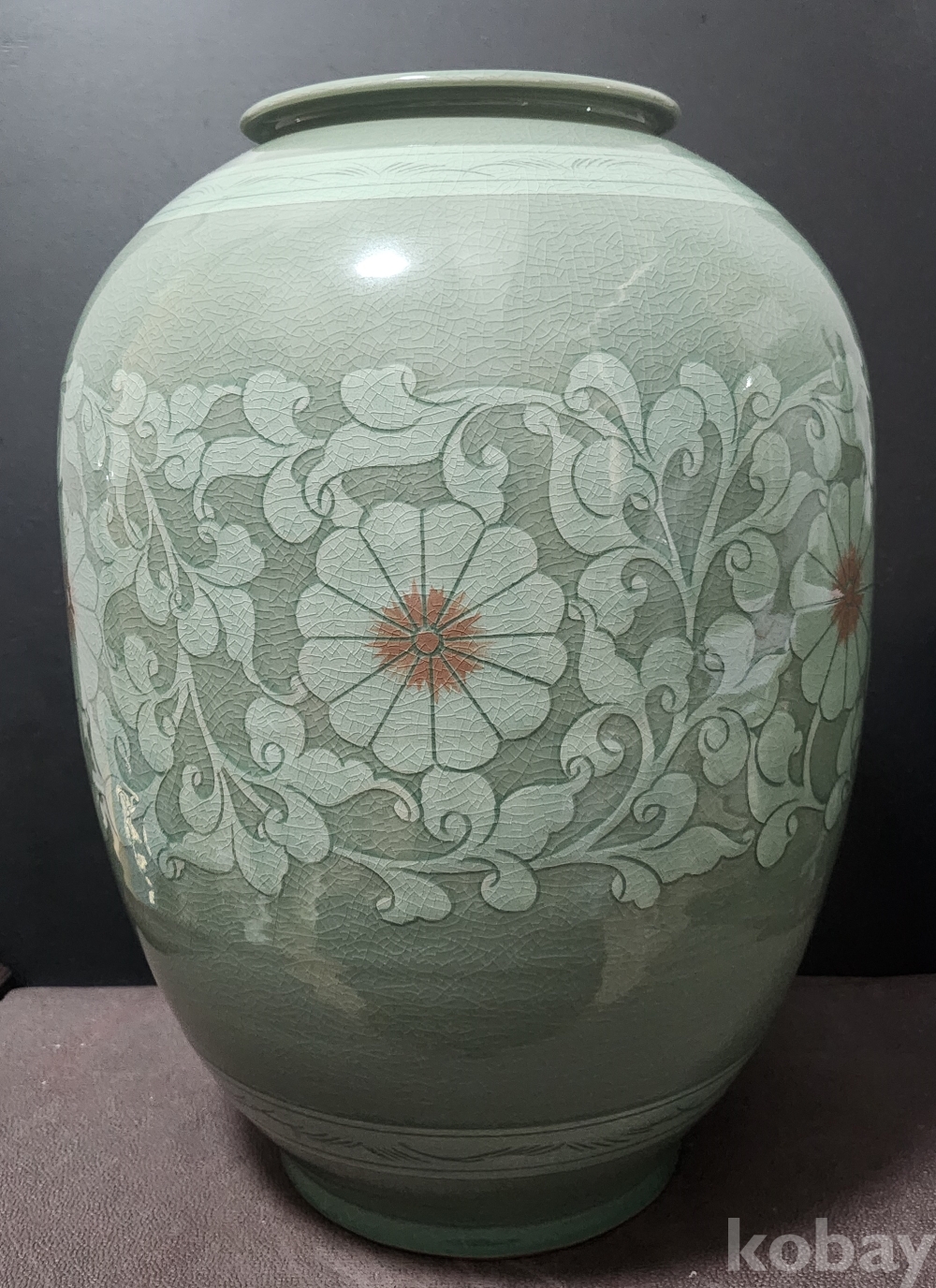 < 도예 명인 > 송파 松坡 조이현 曺利鉉 청자상감음각사군자문대호 靑磁象嵌陰刻四君子紋大壺
